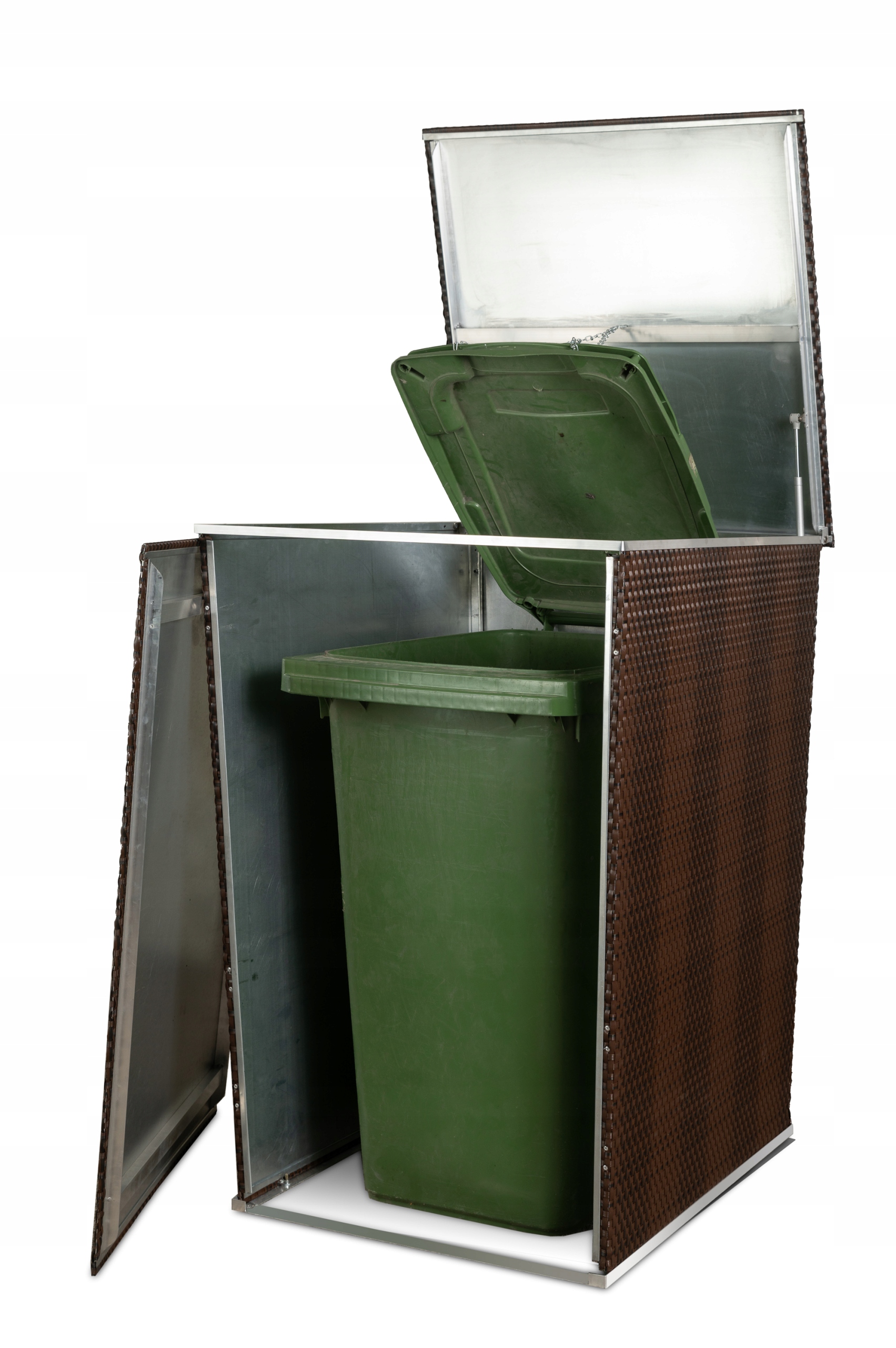 Он также имеет открывающуюся дверцу с запирающейся системой спереди, поэтому контейнер можно легко снять и опорожнить.