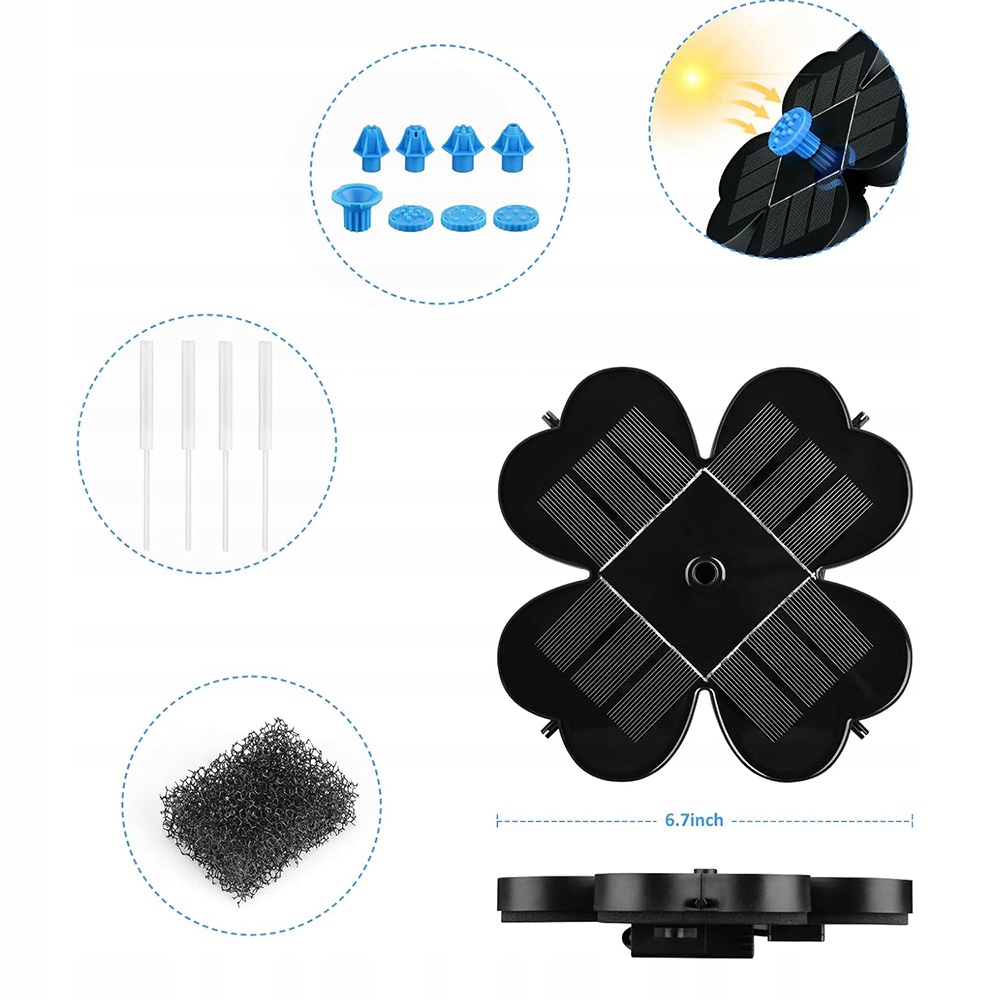 Этот экологически чистый солнечный насос идеально подходит для птиц, рыбных прудов, небольших прудов, бассейнов, садовых прудов, а также для циркуляции воды для кислорода.