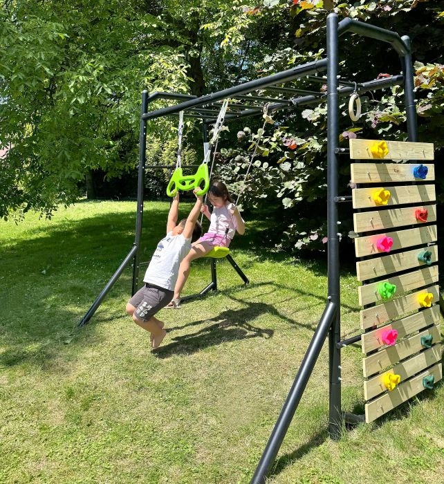 Современный развлекательный комплекс для детей и взрослых, сочетающий в себе функциональность садового спортзала, творческой площадки и фитнес-заданий. тренажерный зал в саду, детская площадка Monkey bar Trapez – это идеальное сочетание спортзала в саду и игровой площадки для детей и взрослых. Конструкция из прочных материалов обеспечивает безопасность и долговечность на долгие годы. Благодаря различным элементам - позволяет тренировать все тело, развивает координацию и силу и в то же время гарантирует отличное развлечение на свежем воздухе.