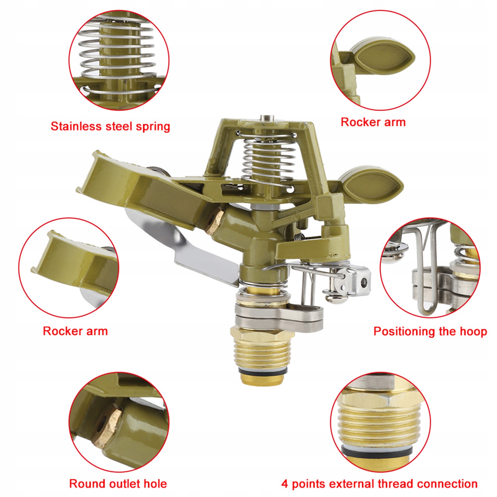 Особенность: 1. Профессиональный металлический пульс спринклер с основанием с шипами и стабилизирующими руками.