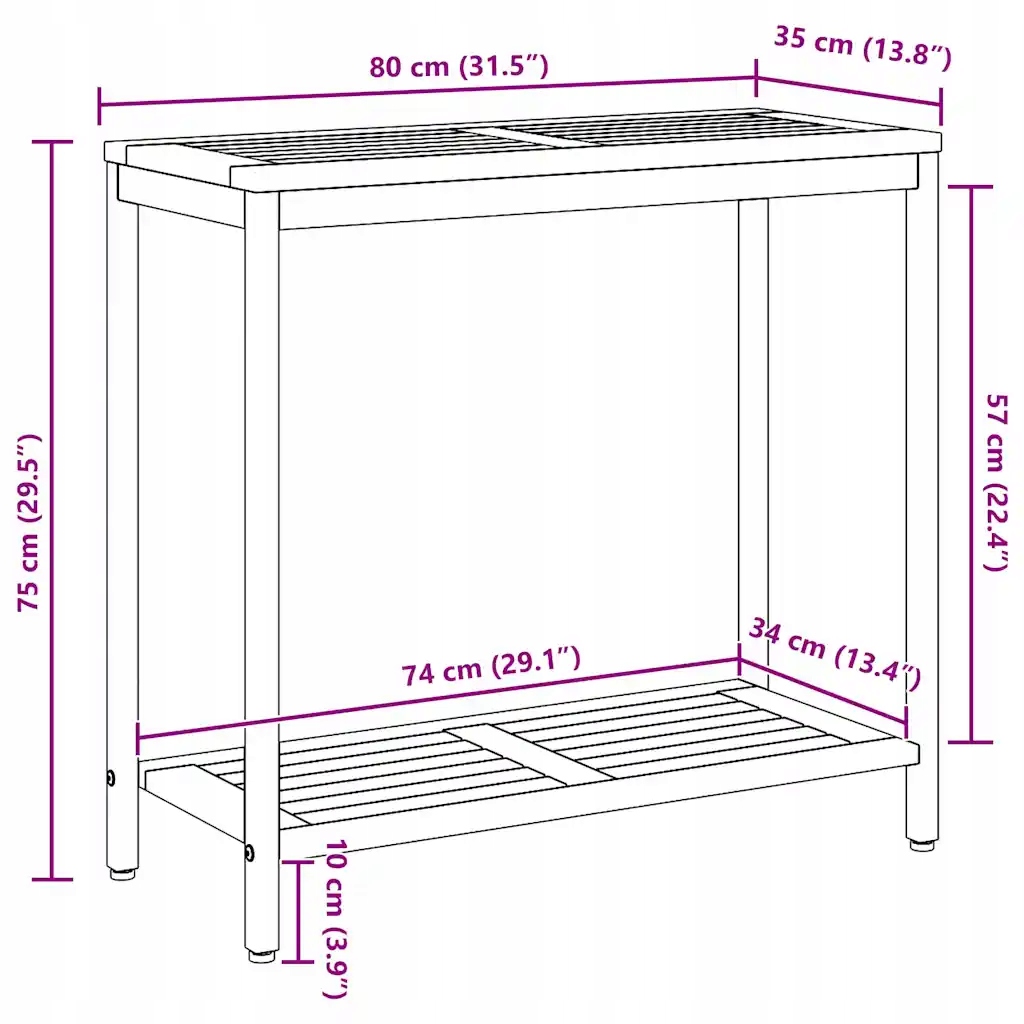 Садовый стол из массива акации и стали, 35 x 80 x 75 см, бежевый