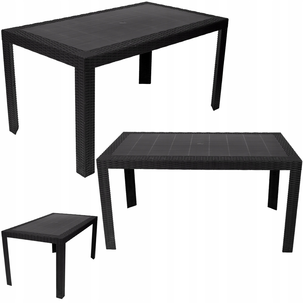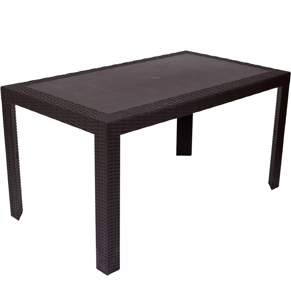 Столешница изготовлена из литого полипропилена. в стиле техноротанг. В середине столешницы имеется практичное и полезное отверстие для садового зонтика.