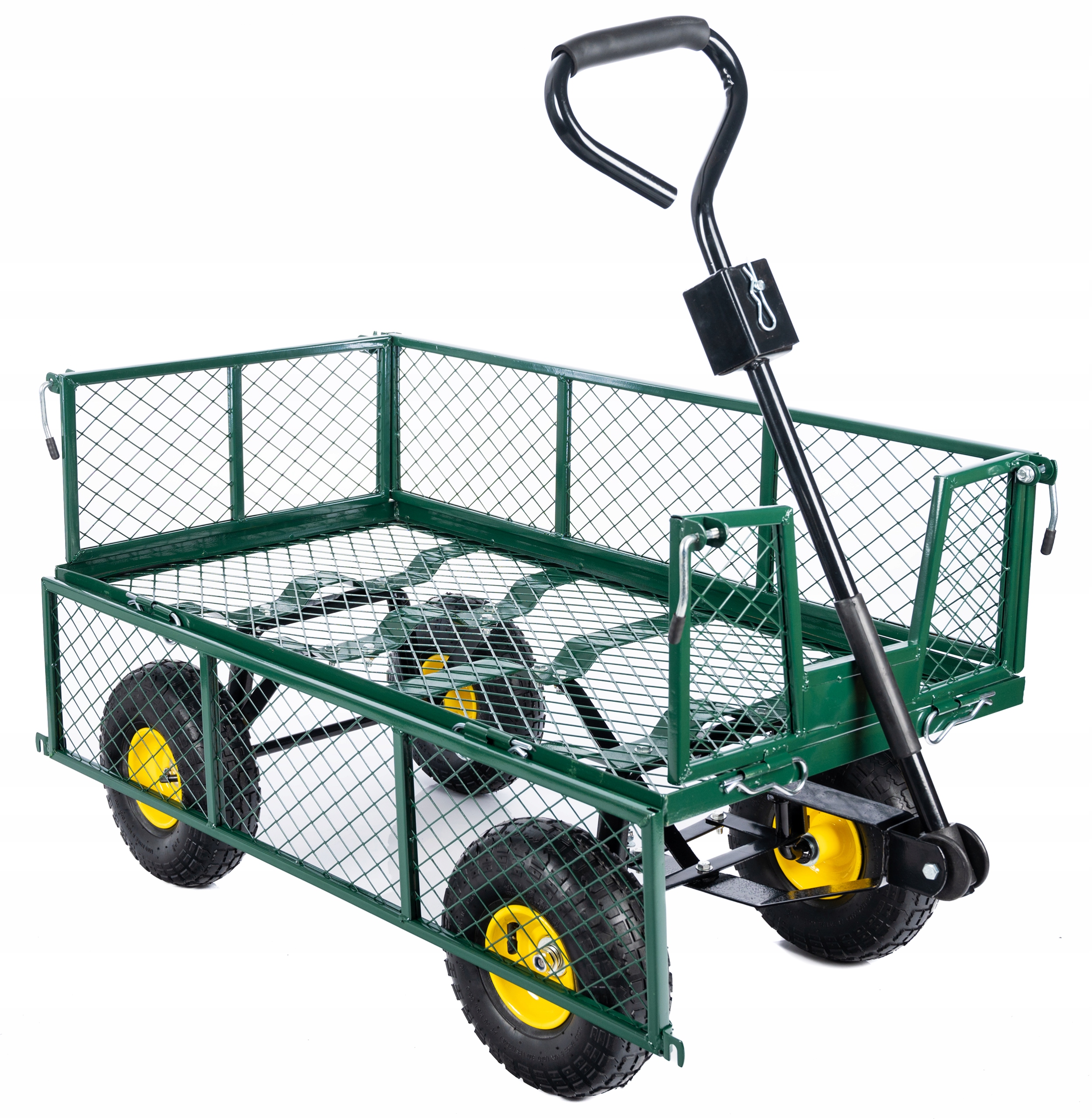 Прочная, металлическая конструкция и съемные стороны облегчают транспортировку почвы, ветвей, удобрений, инструментов и других материалов