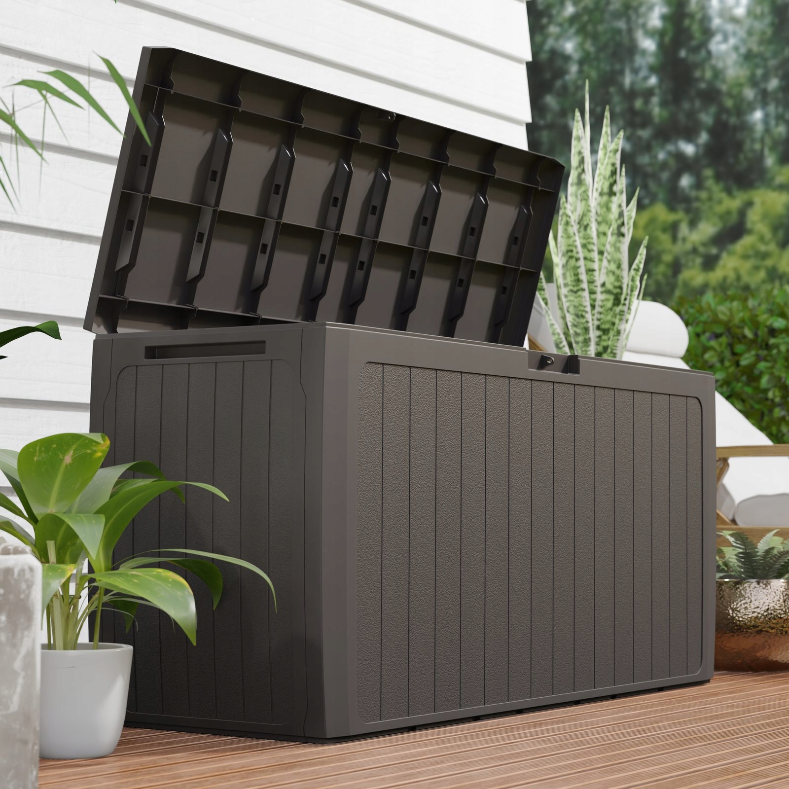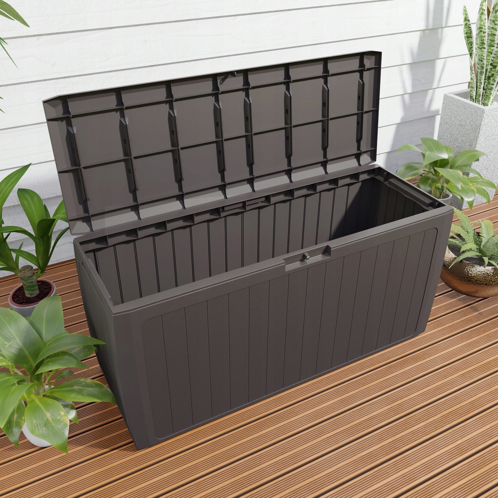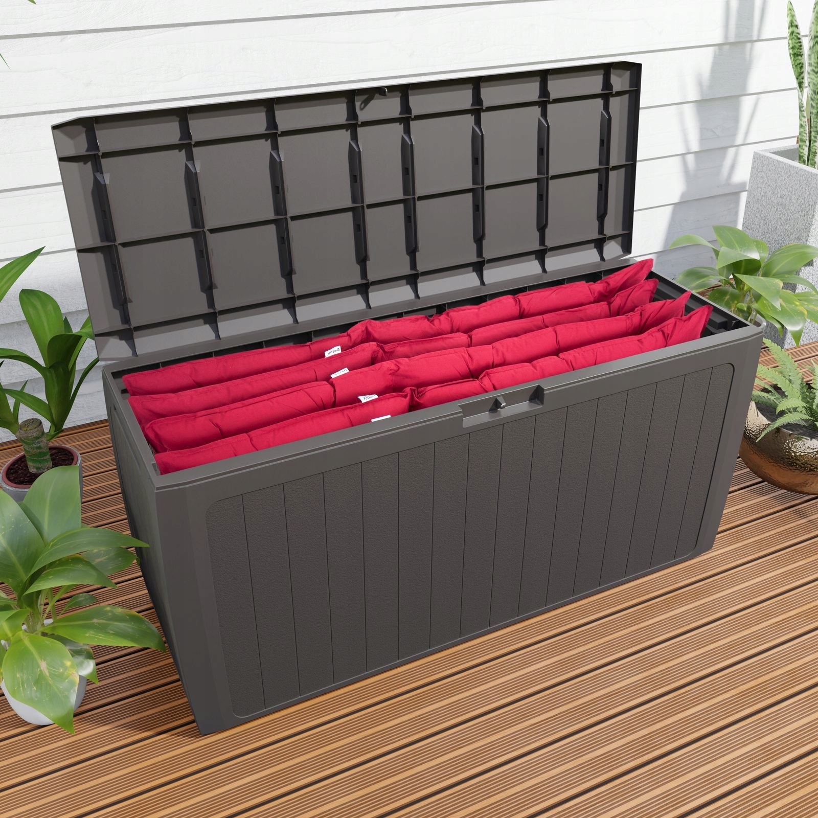 Устойчивый к погодным условиям и ультрафиолетовому излучению ящик объемом 290 литров предлагает достаточно места для хранения.