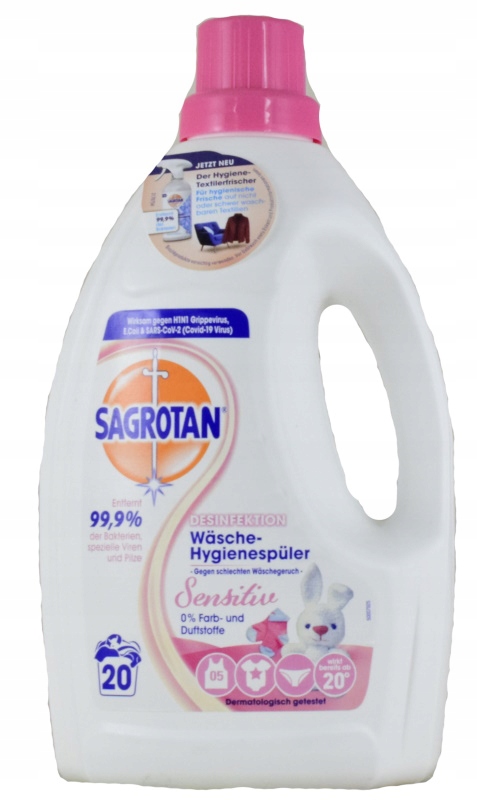 Гигиенический кондиционер для белья Sagrotan Sensitive представляет собой моющую добавку, которая удаляет 99,9 % бактерий, тем самым обеспечивая долгий срок службы. длительная свежесть.