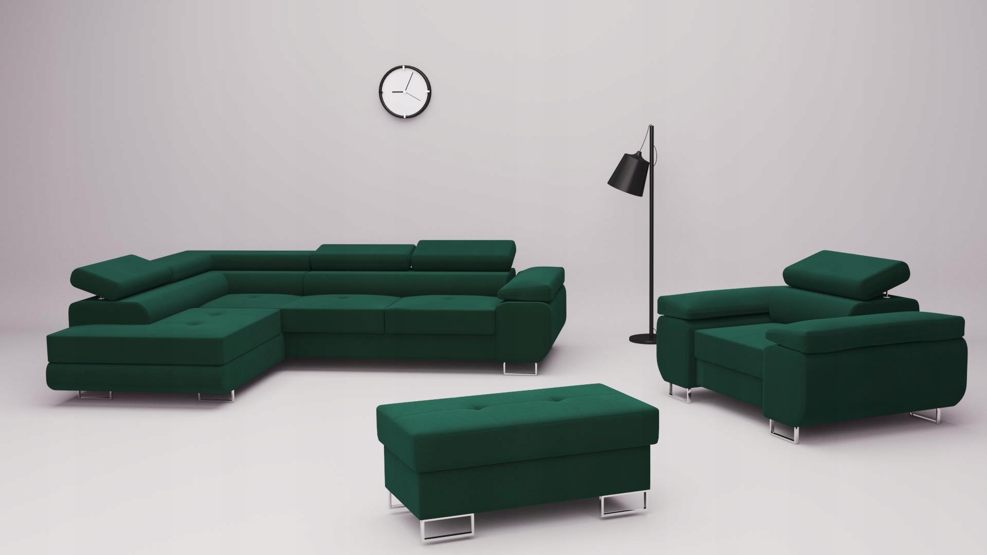 Современный набор сидений, состоящий из функционального угла, удобного кресла и открытого пуф. 4 градуса регулировки подголовки. Функция сна, которая всегда будет полезна, и контейнер для постельных принадлежностей. Сделано с необычайным вниманием к деталям. Дизайн, который привлекает внимание от первого взгляда. Комфорт использования благодаря Falcling Spring Technology и высоко эластичным пенам. Прочная рама - это сочетание дерева и сопоставки