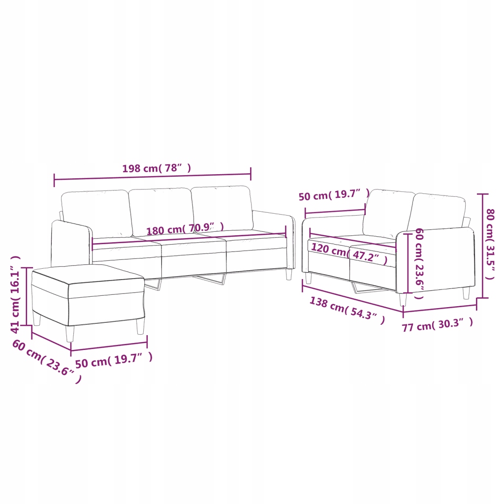 Комплект диванов, светло-серый, 2-х и 3-х местный диван + табурет для ног