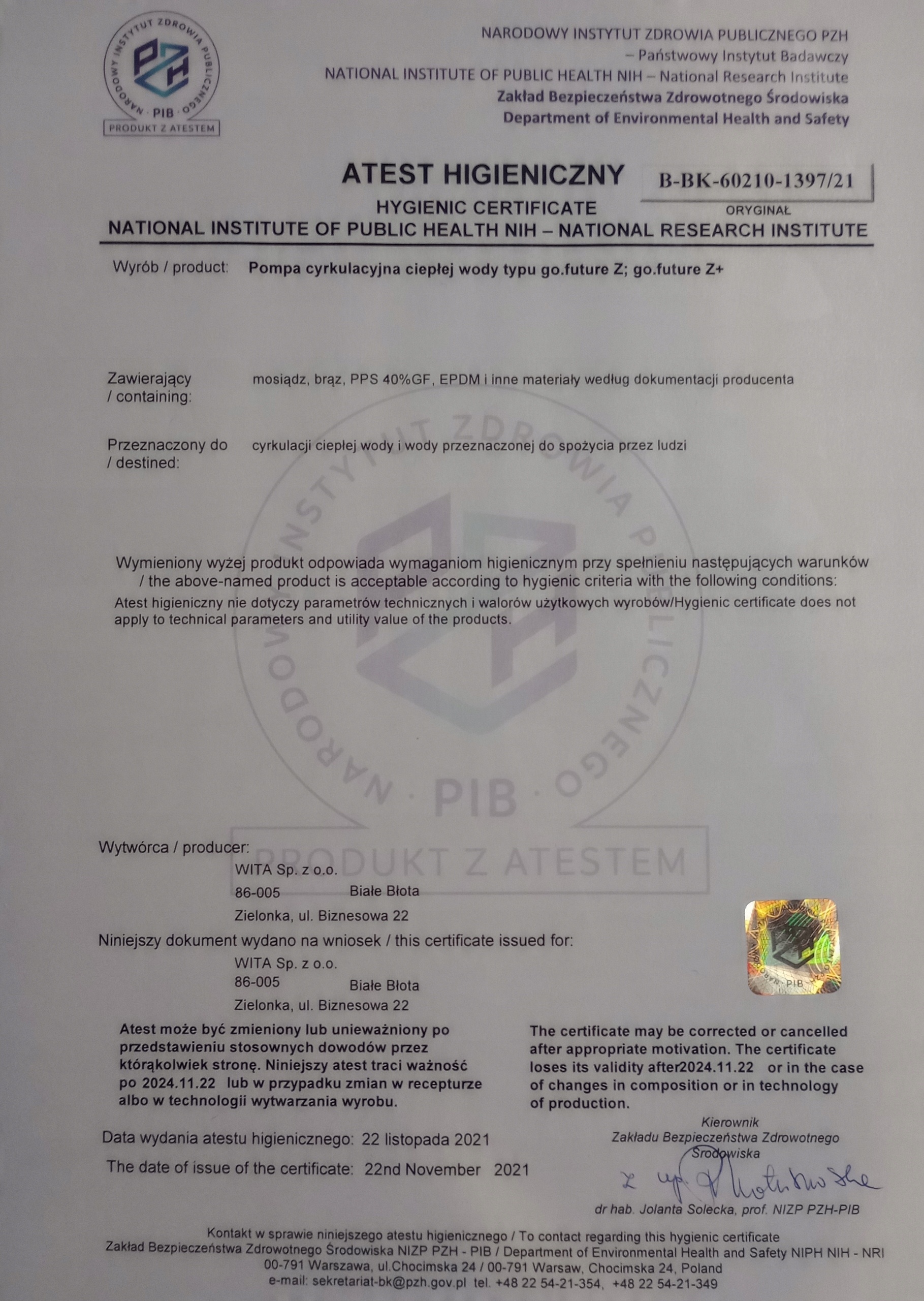 - Компания Wita получила сертификат качества ISO 9001:2015. по производству и продаже насосов и арматуры для отопления