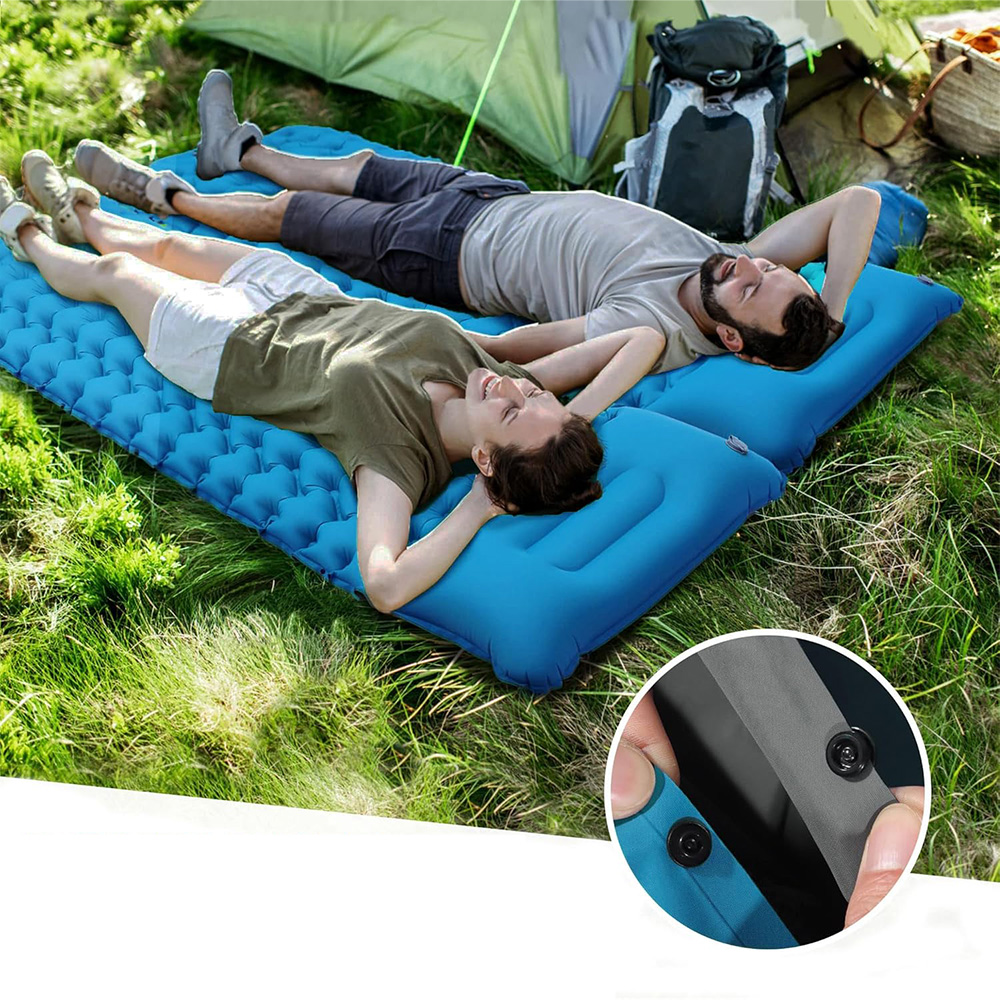 Этот походный спальный коврик оснащен кнопками по бокам, что позволяет легко соединить два спальных коврика, чтобы создать двуспальную кровать, покрывающую весь пол палатки, чтобы избежать легкого соскальзывания. Идеально подходит для различных видов активного отдыха, особенно подходит для семейного кемпинга.