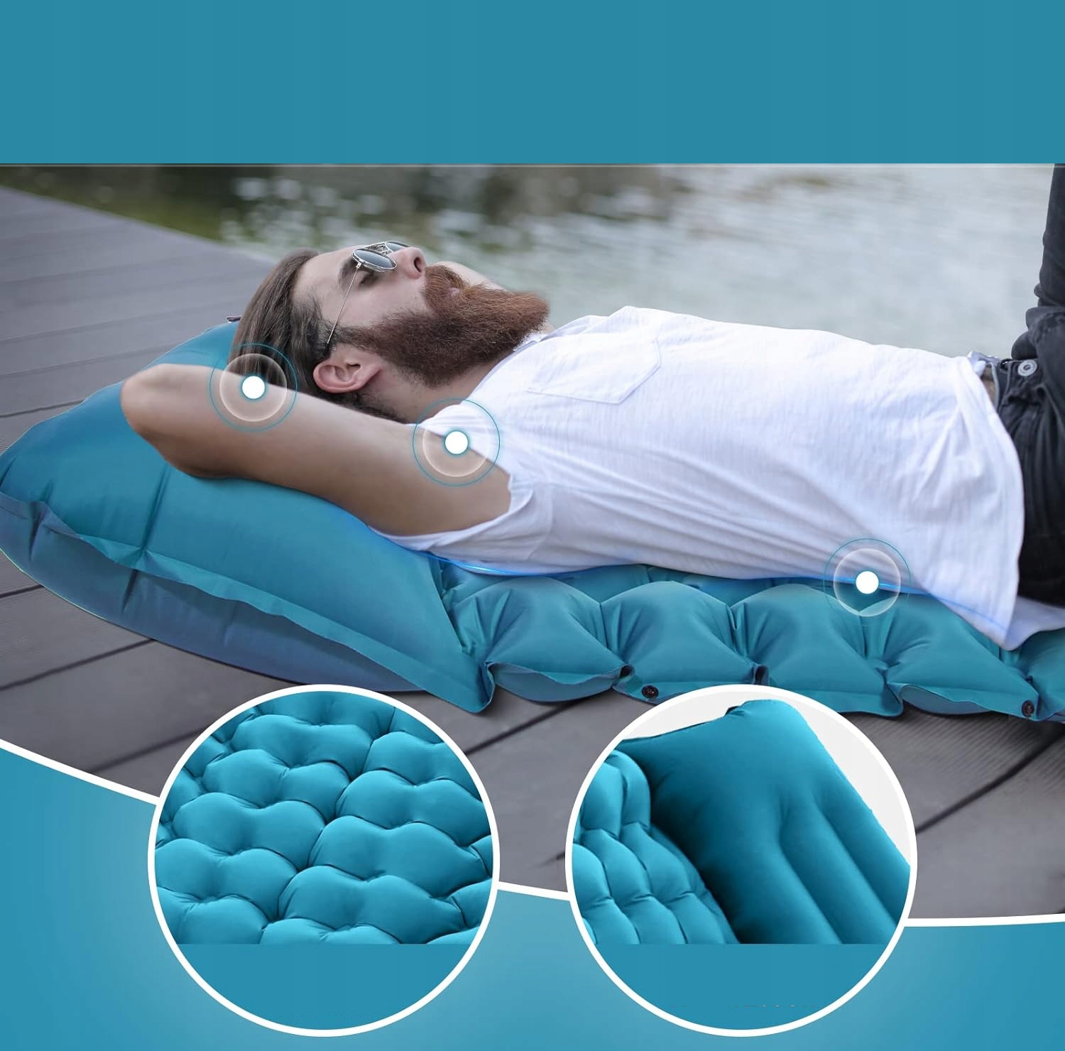 наш самонадувающийся надувной матрас имеет размеры до 202x65x15x7 см. По сравнению с другими спальными ковриками шириной 58 см, доступными на рынке, он может предоставить вам больше места для отдыха. Инновационные воздушные камеры яйцеобразной формы и встроенная подушка предназначены для уменьшения давления на спину и шею, поэтому вы можете наслаждаться уютом подушек на открытом воздухе.