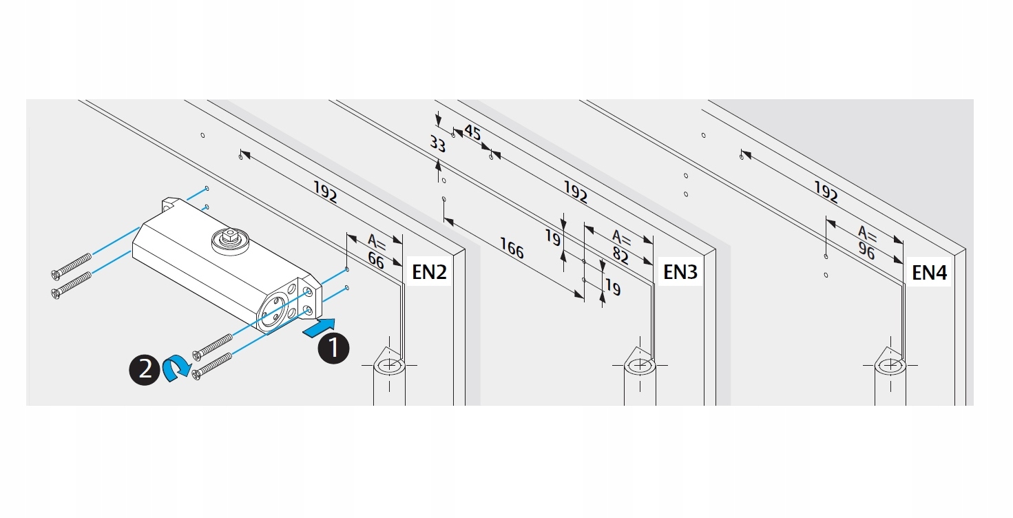 размер en 2/3/4 - Мощность в зависимости от положения монтажа на дверном листе или раме