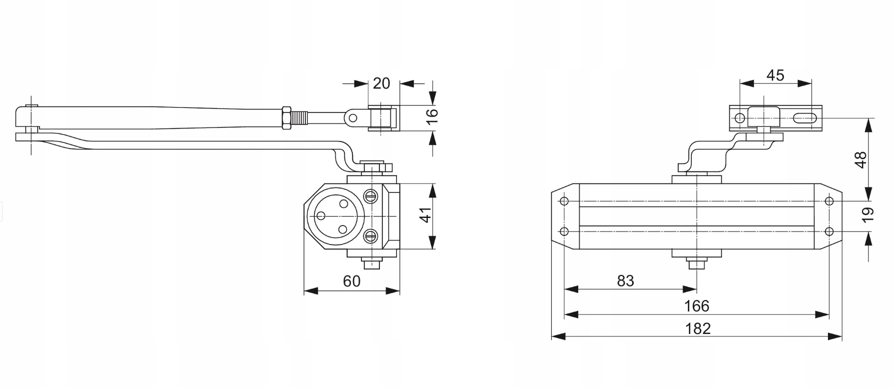 в левую и правую дверь с шириной крыла до 1100 мм и весом до 80 кг. При использовании кронштейна для монтажа параллельной ширины рук 950 мм и вес до 60 кг