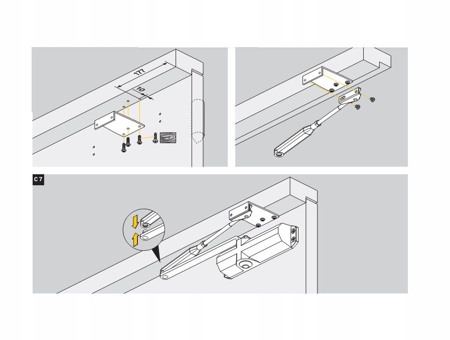 Self -Closer на дверном листе, кронштейн на раме (дверная рама)