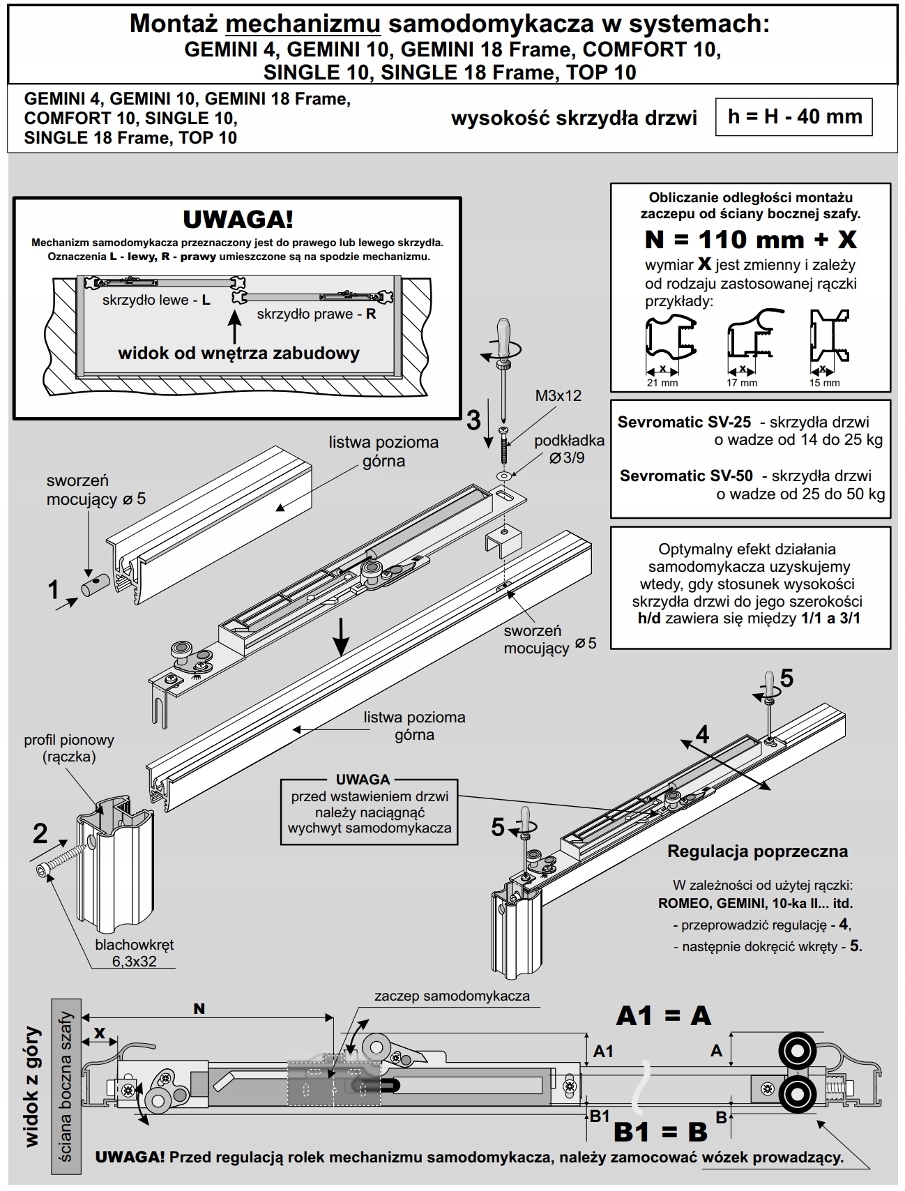 Sevromatic SV-50-это готовый набор систем, ингибирующих и закрывающие двери в скользящих шкафах. Модель SV-50 запланирована на дверь 25-50 килограммов.