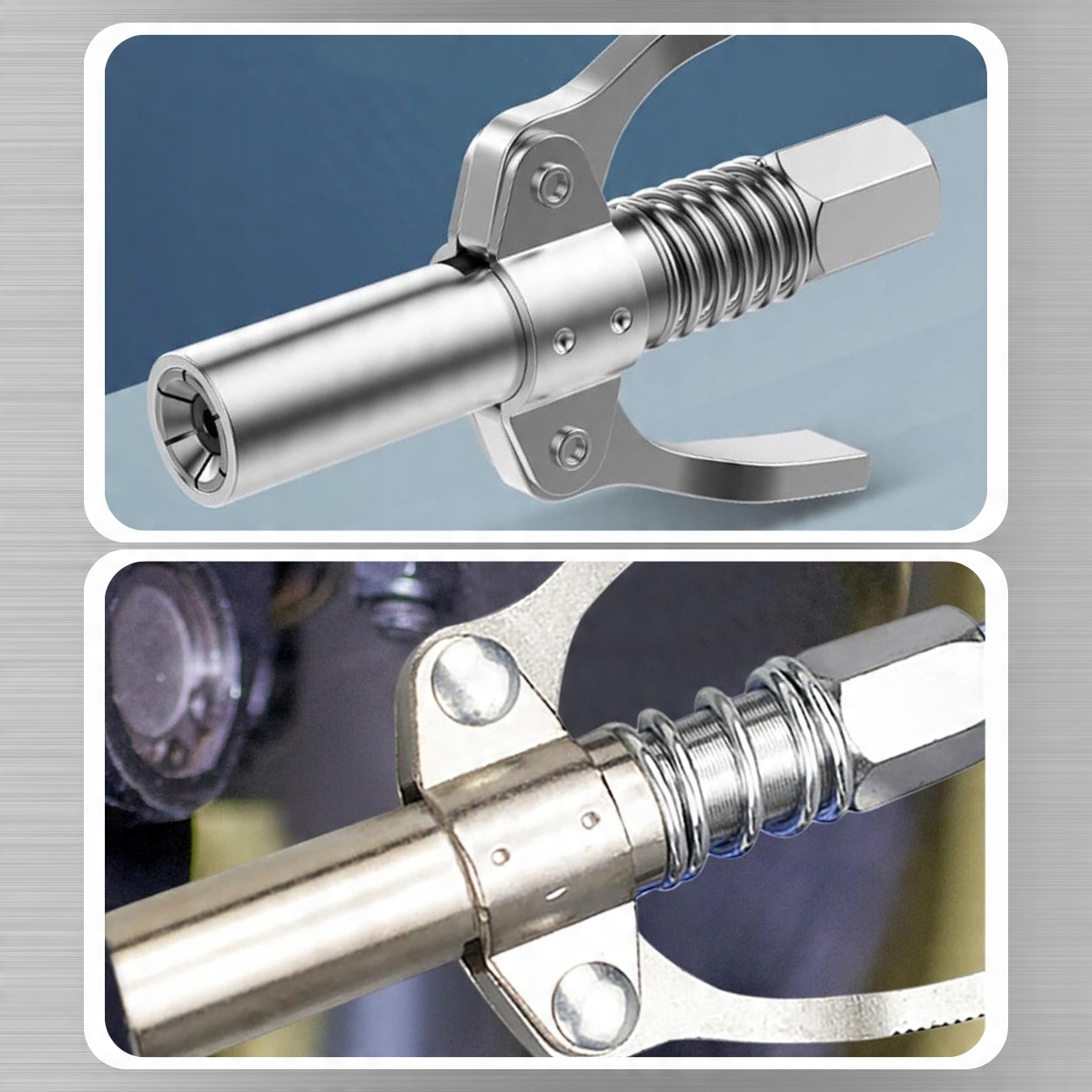 Наконечник изготовлен из оцинкованная сталь для долговечности и устойчивости к коррозии. Кроме того, более толстые пружины обеспечивают более сильное запирающее усилие, что эффективно предотвращает утечки во время смазки.