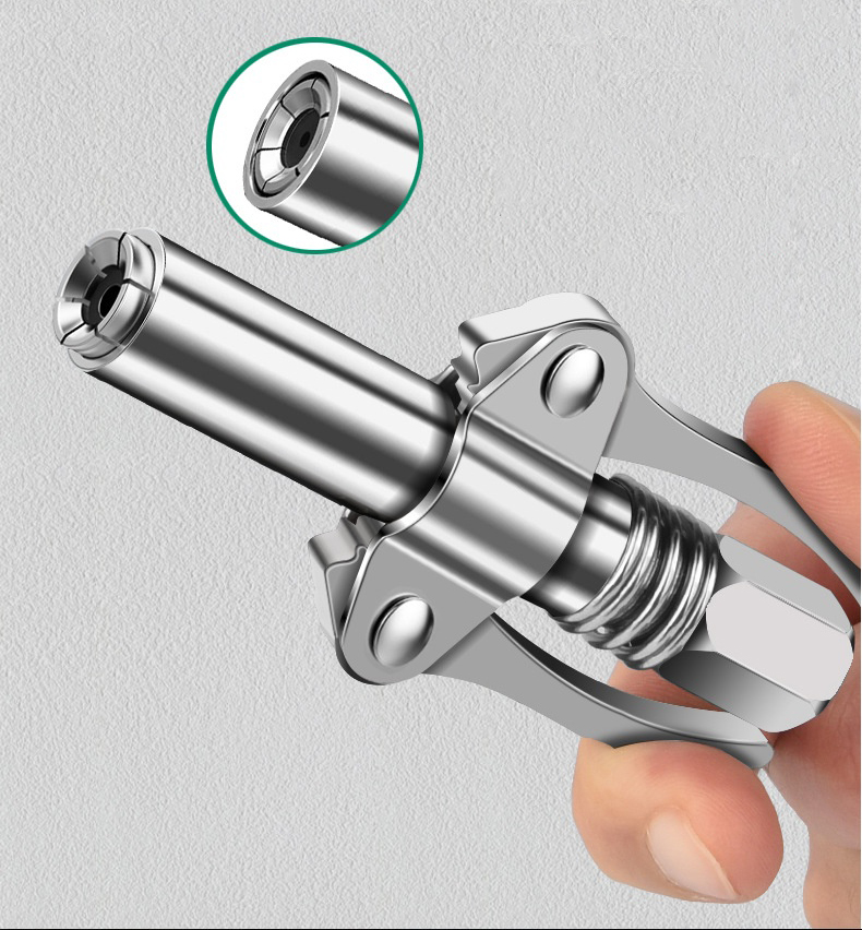 Совместимо со всеми смазочными шприцами с резьбой NPT 1/8 дюйма. Насадка для смазочных шприцов подходит для всех смазочных шприцов с резьбой NPT 1/8 дюйма, пневматические, ручные смазочные шприцы и муфты Zerk, также подходят ко всем смазочным шприцам DIN и SAE. Улучшенная челюсть может работать под высоким давлением без деформации.