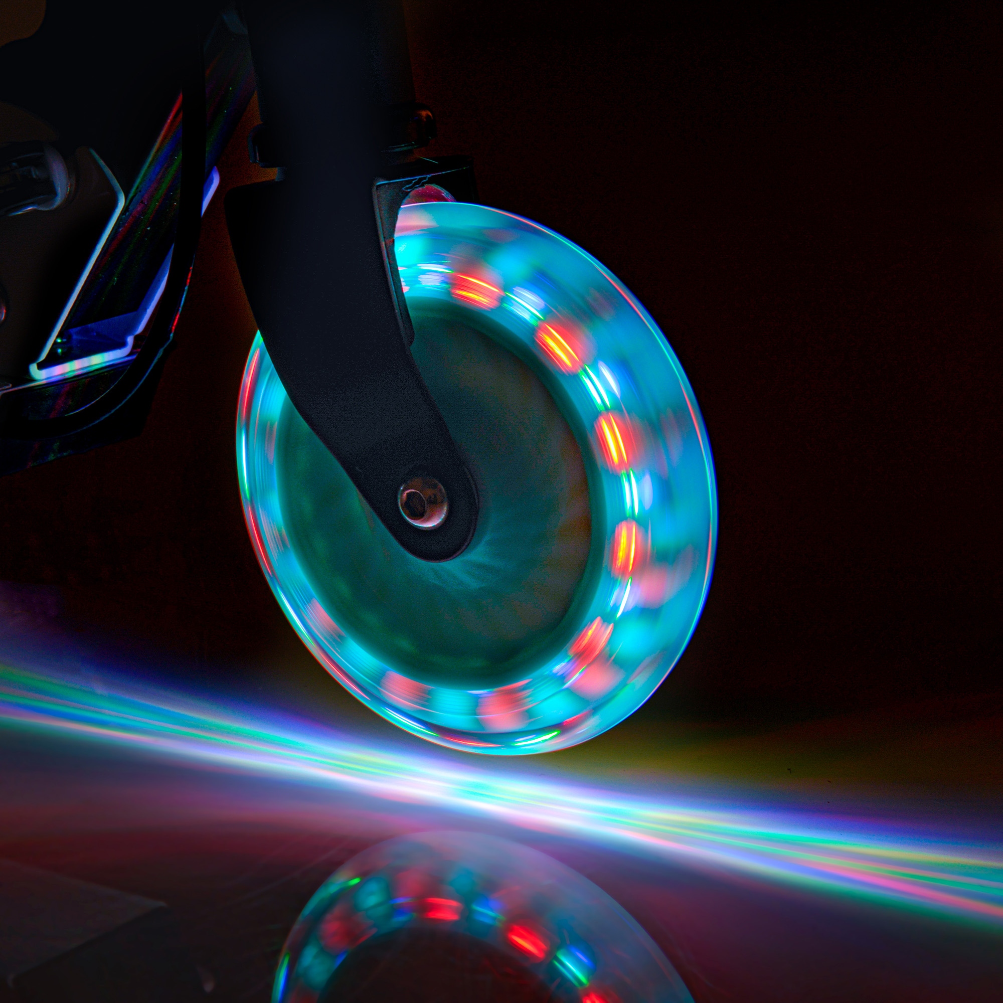✅Светящиеся колеса добавляют привлекательности и повышают заметность самоката при езде в сумерках.