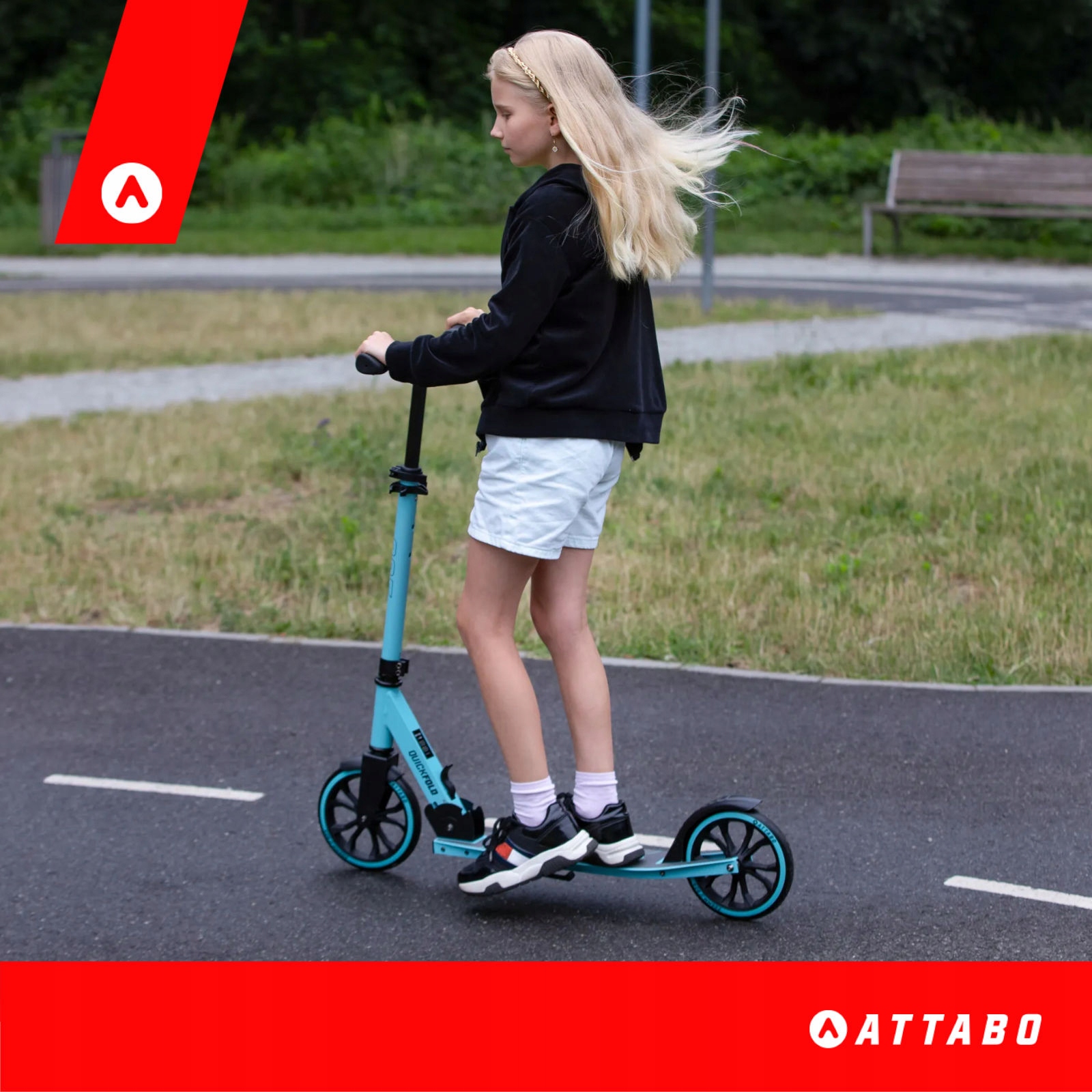 Самокат Attabo 205 предназначен для использования детьми в возрасте от 9 до 14 лет. Благодаря регулируемой рукоятке ее можно подогнать под рост ребенка (125 – 175 см). Модель для прогулочной езды идеально подходит для поездок в школу и активного времяпрепровождения на свежем воздухе.