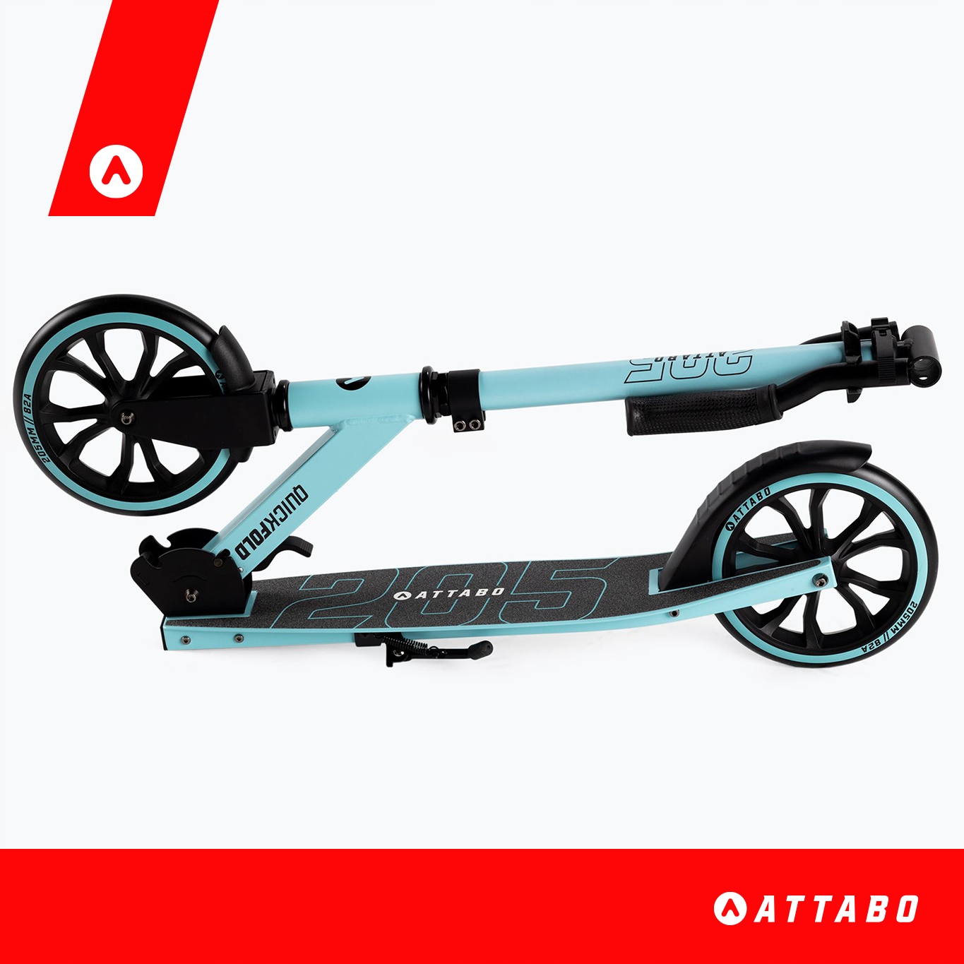 ATTABO 205 — прочный самокат с алюминиевой декой и стальной вилкой, подходящий для прогулочного катания детей и подростков. Регулируемый руль позволяет подогнать оборудование под рост пользователя, а резиновые колеса диаметром 205 мм с твердостью 82А гарантируют максимальное сцепление и поглощение вибрации.