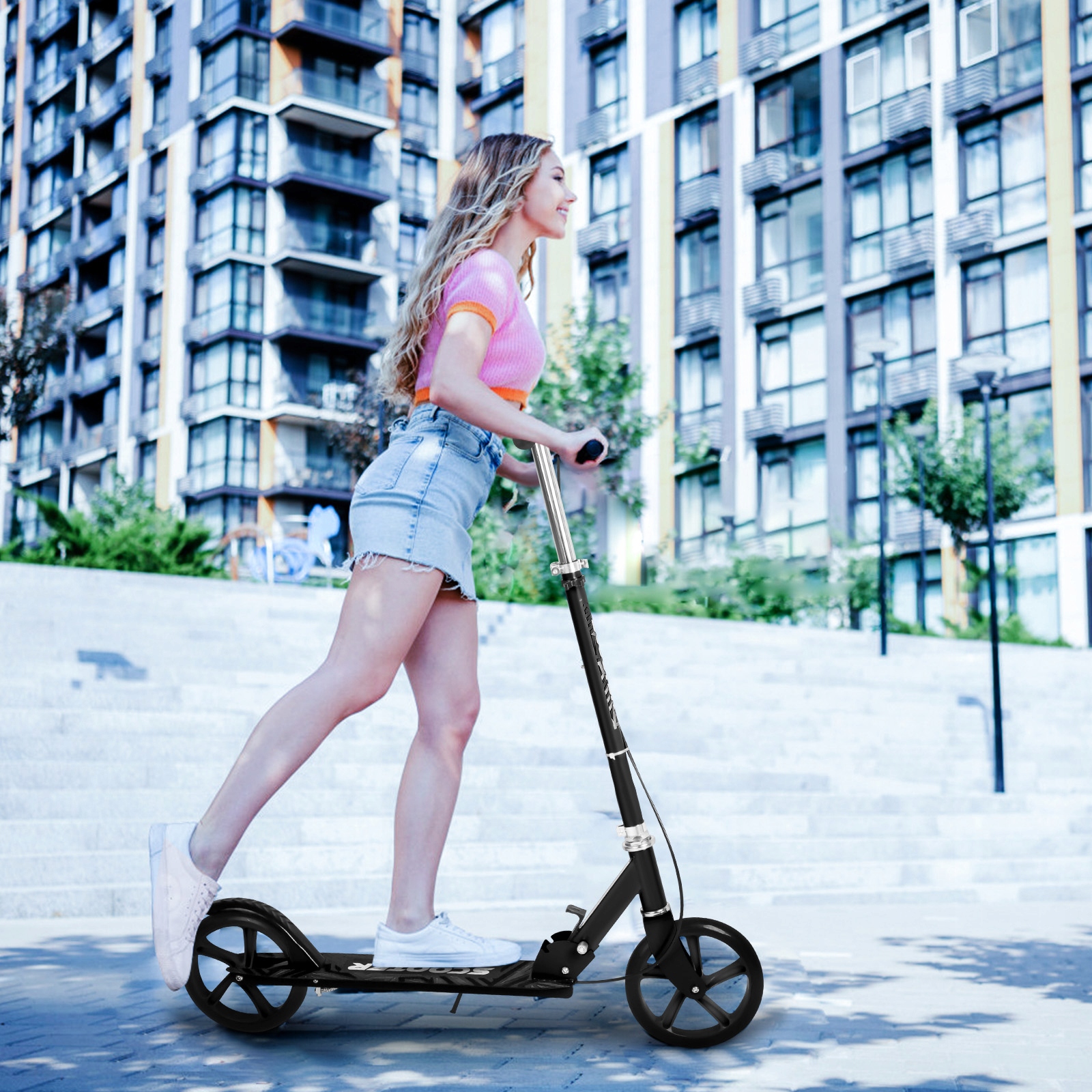 - 【Hass-Free Ride】Наш самокат оснащен большими полиуретановыми колесами 200 мм с высоким отскоком, подшипниками ABEC-7 и механизмом подвески для плавной и комфортной езды по твердым и неровным поверхностям, подходящим для всех типов тротуаров. Текстурированные нескользящие подножки позволяют новичкам легко удерживать ноги при скольжении с места на место, повышая уверенность во время поездок.