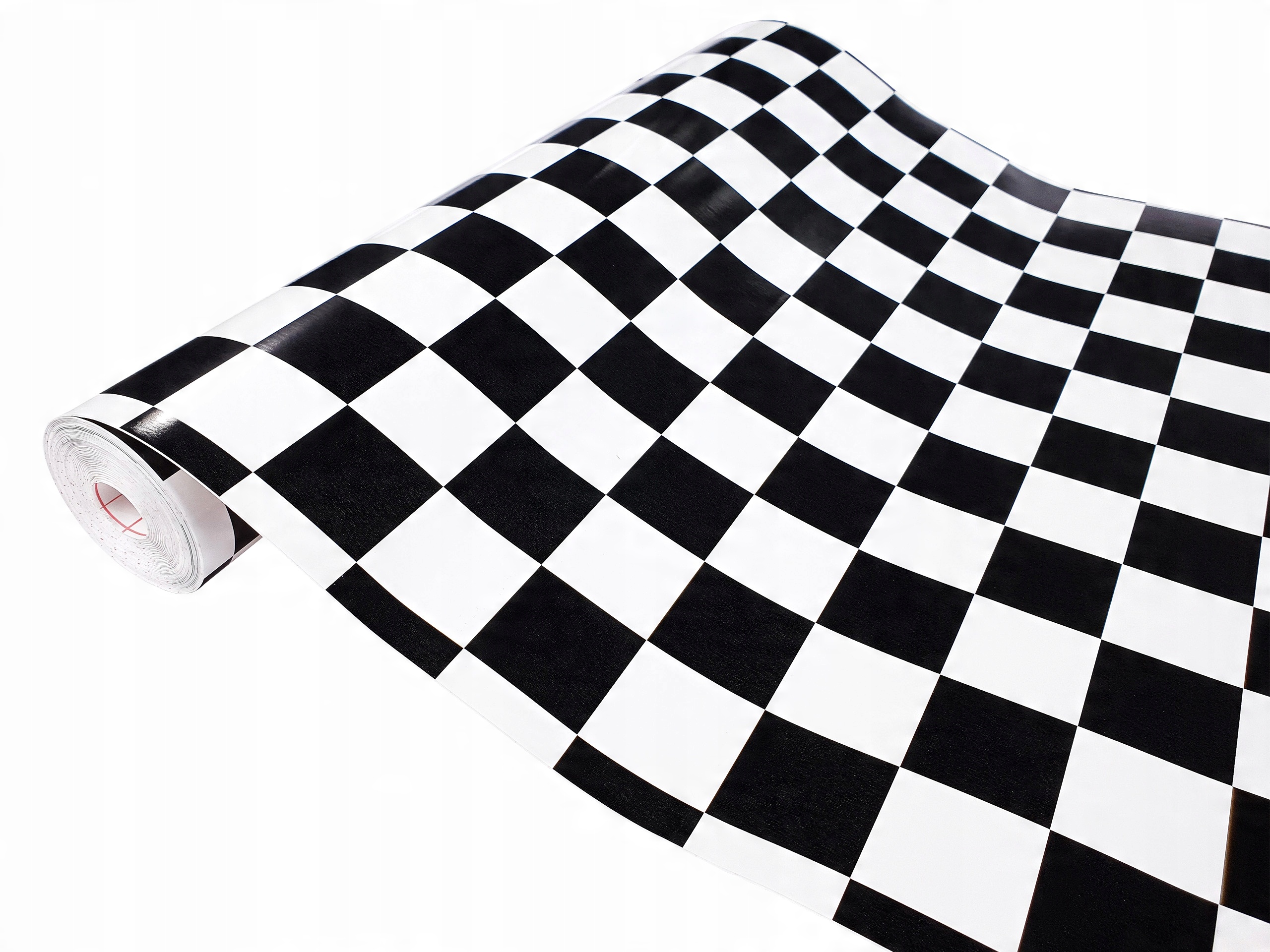 Самоклеюча фольга меблевий шпон шаховий глянцевий картатий білий і чорний
