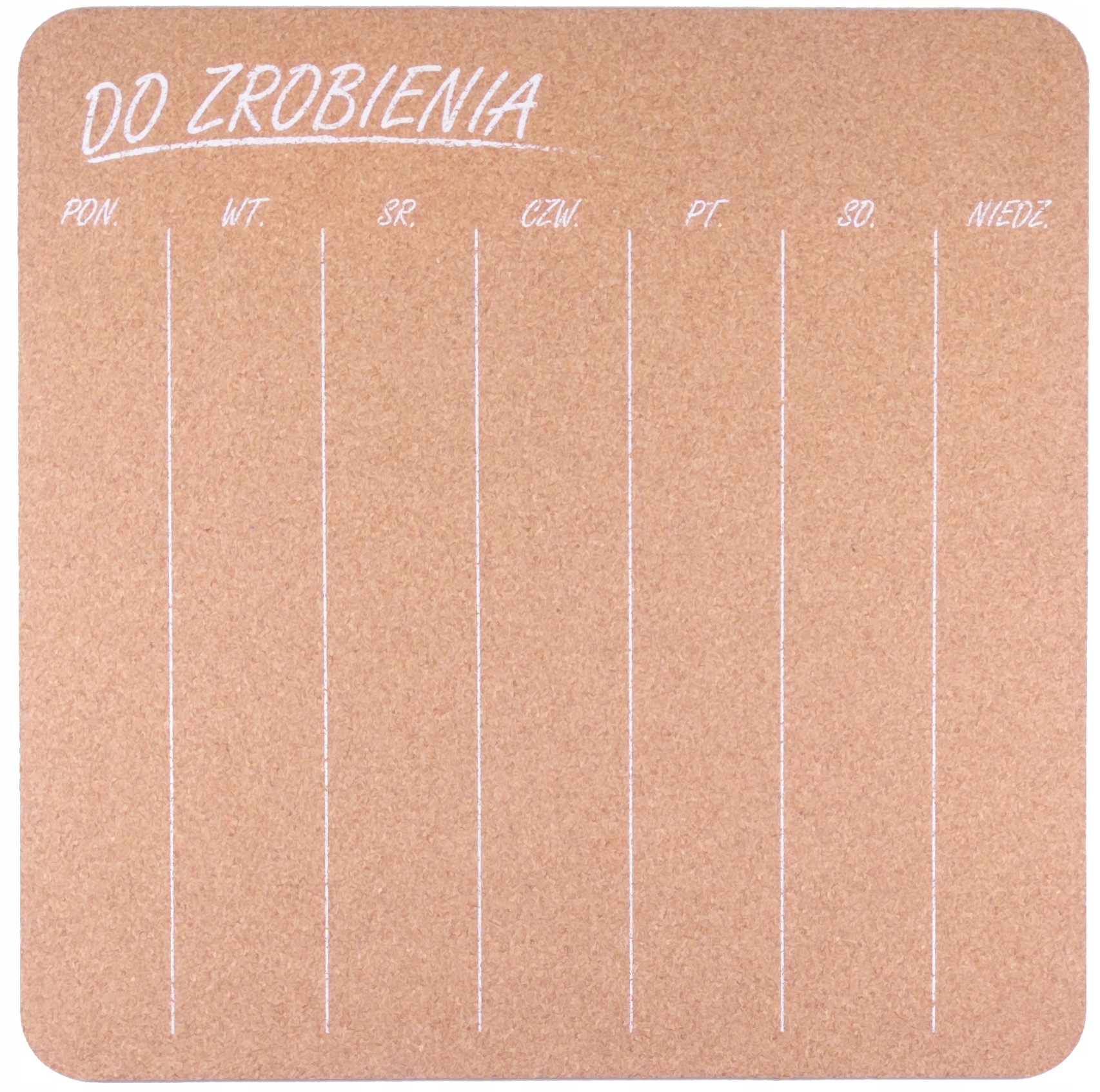 Самоклеящаяся пробковая доска с планом на неделю – это практично и эстетично. продукт, который позволяет вам четко и эффективно организовывать ваши ежедневные задачи и обязанности. Изготовлен методом трафаретной печати.