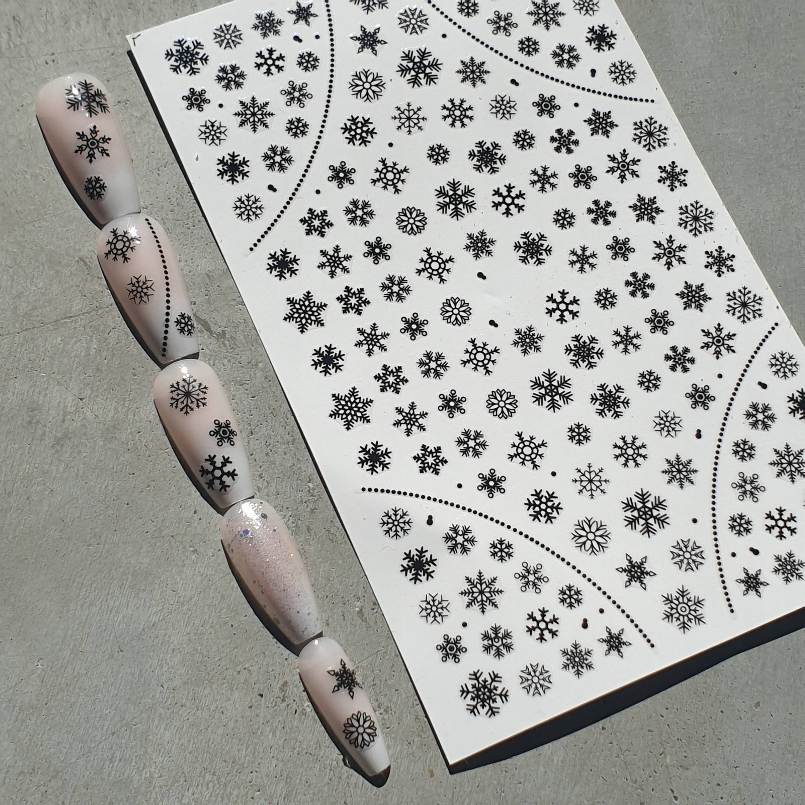 Самоклеючі різдвяні зимові чорні сніжинки наліпки для нігтів