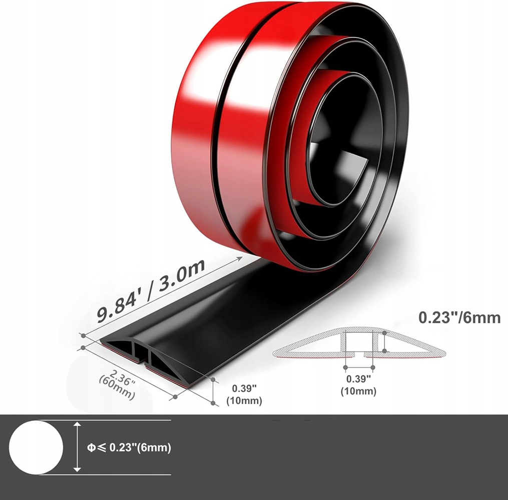 ✔️✔️✔️【Прочная и практичная полукруглая уплотнительная лента】Уплотнительная лента имеет противоскользящую функцию. Если вы наступите на кабельный лоток, даже если он скрипит, он не сломается. Кабельный канал имеет 3 отдельных канала, через которые можно протягивать кабели. Подходит для кабелей или сетевых кабелей разной толщины.