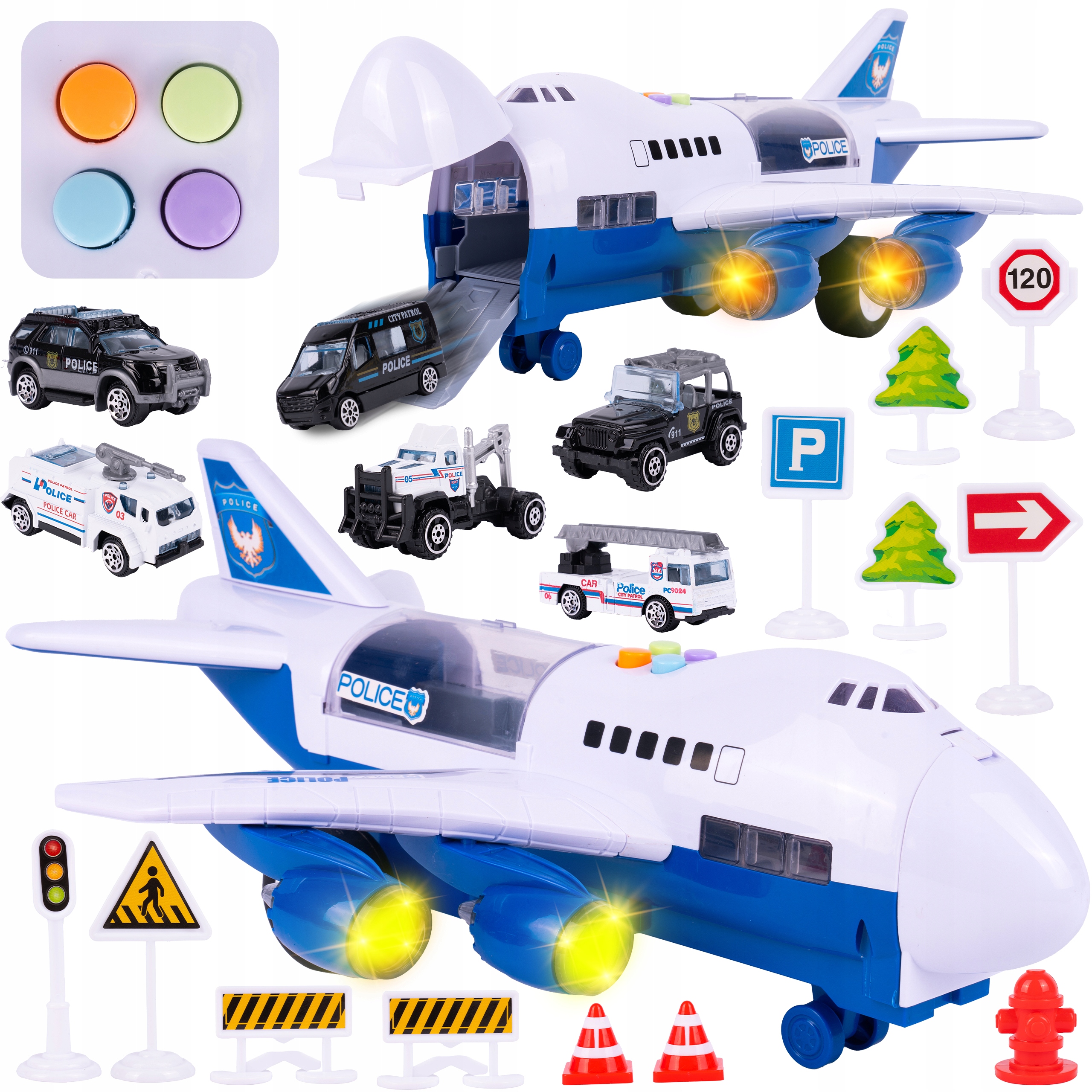 SAMOLOT OTWIERANY INTERAKTYWNY TRANSPORTOWY PASAŻERSKI Z POJAZDAMI POLICJA