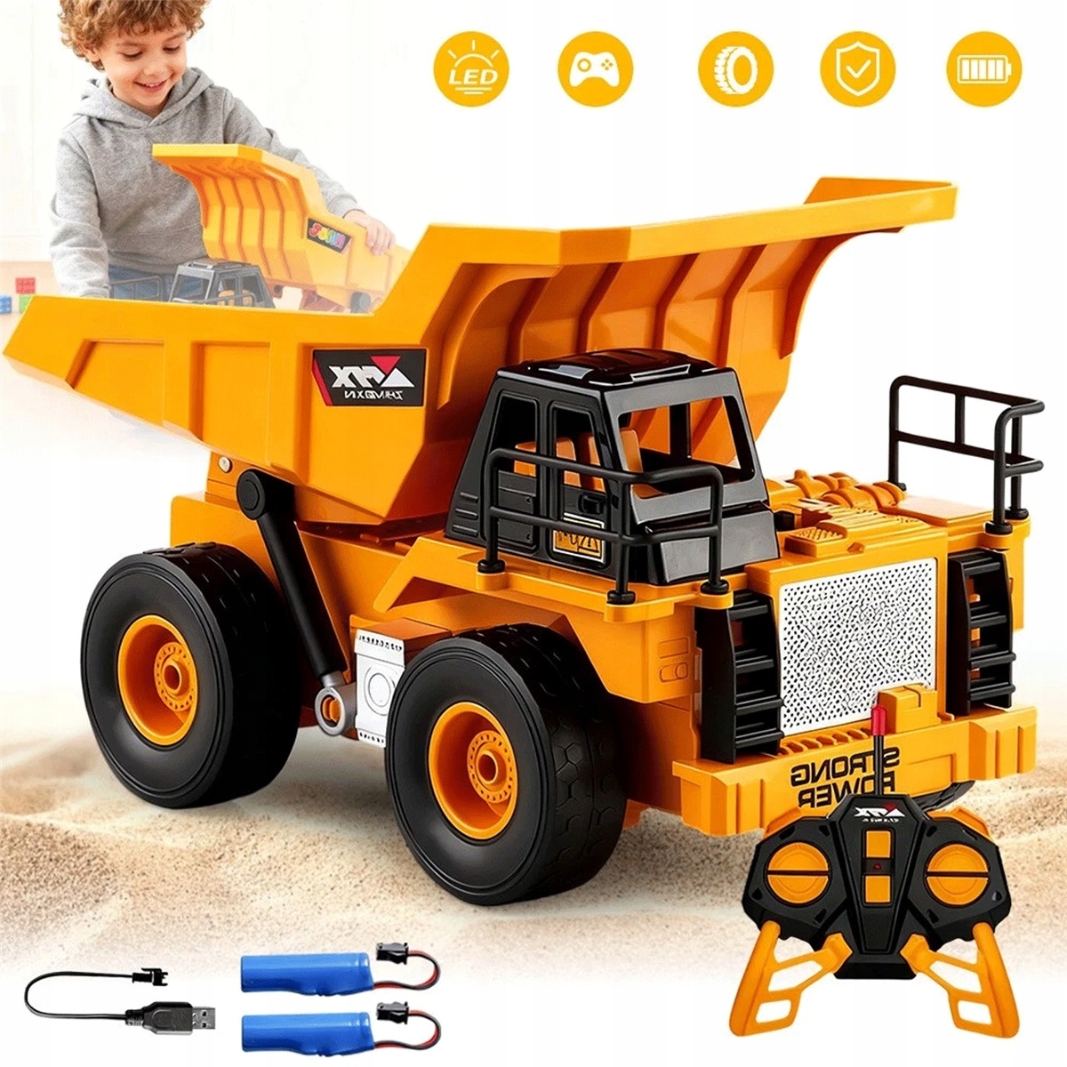 САМОСВАЛ С ДИСТАНЦИОННЫМ УПРАВЛЕНИЕМ, 2,4 ГГЦ, СО СВЕТОДИОДНЫМИ ЖЕЛТЫМИ ФОНАРИМИ ДЛЯ ДЕТЕЙ 3+