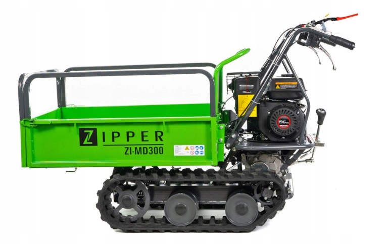 - Крутые склоны или другая сложная местность не являются проблемой для самосвалов ZIPPER. Разгрузка происходит путем наклона панели погрузочного короба. Боковые панели можно полностью снять.