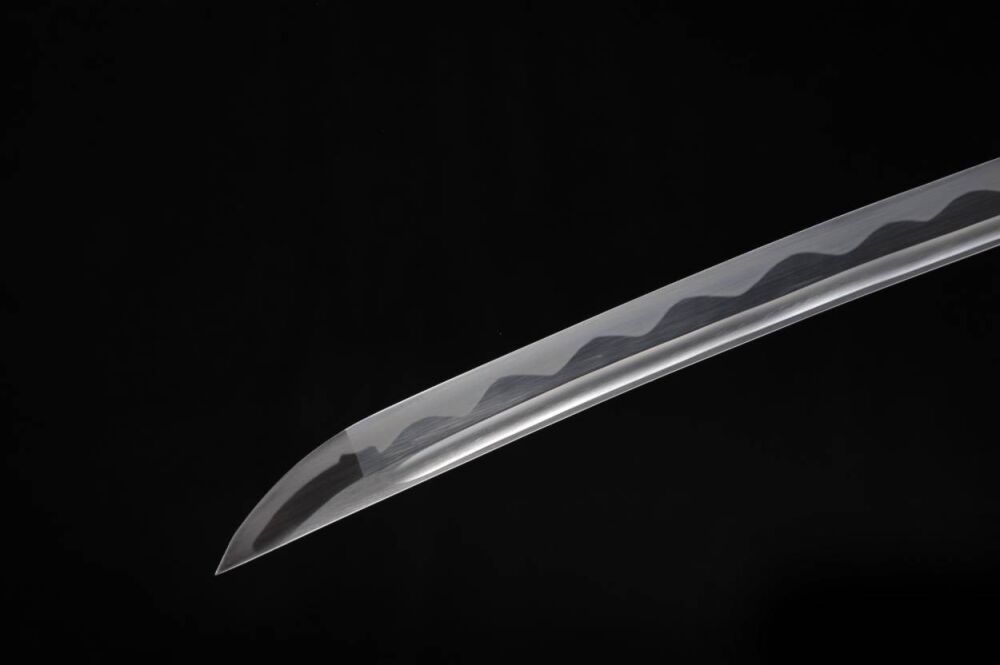 Эта катана изготовлена в небольшой кузнице с использованием только традиционных оружейных технологий и оригинальных материалов. Рукоять состоит из двух кусков твердой древесины японской магнолии, склеенных рисовым клеем и покрытых кожей ската. У него есть кольцо, называемое фучи, со стороны рукоятки, и воротник, закрывающий лезвие у основания рукоятки, называемый хабак. Цуба? Ручка диска из цветного металла, богато декорирована. Изогнутый клинок, выкованный кузнецами из стали 1060 по технологии, передаваемой из поколения в поколение.