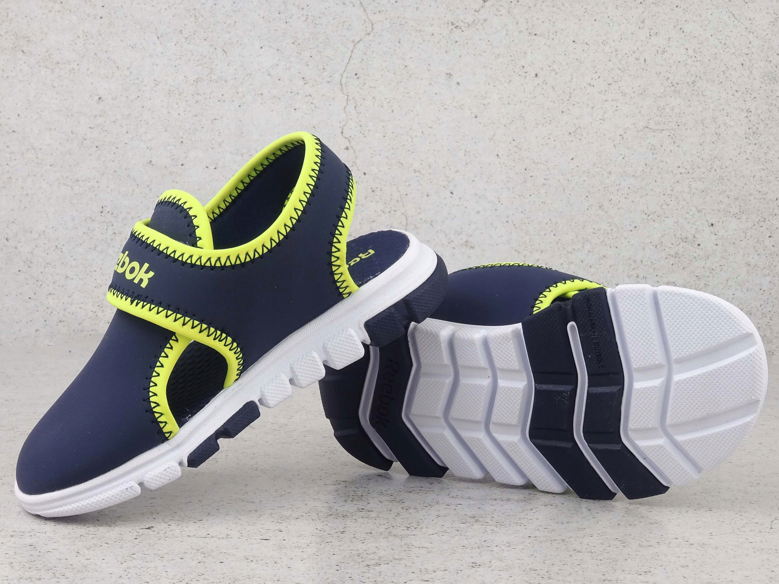 Сандалии с застегивающимися ремешками REEBOK WAVE GLIDER III. Детям нравится надевать сандалии Wave Glider и бегать на улицу, чтобы поиграть в теплые дни. Гладкие атласные верхние лямки не раздражают кожу и обеспечивают идеальную посадку. Резиновые шипы в нижней части подошвы увеличивают сцепление на игровой площадке и в бассейне. Надежная модель, любимая покупателями. Они идеально подходят для пляжа, бассейна или прогулок в теплые дни.