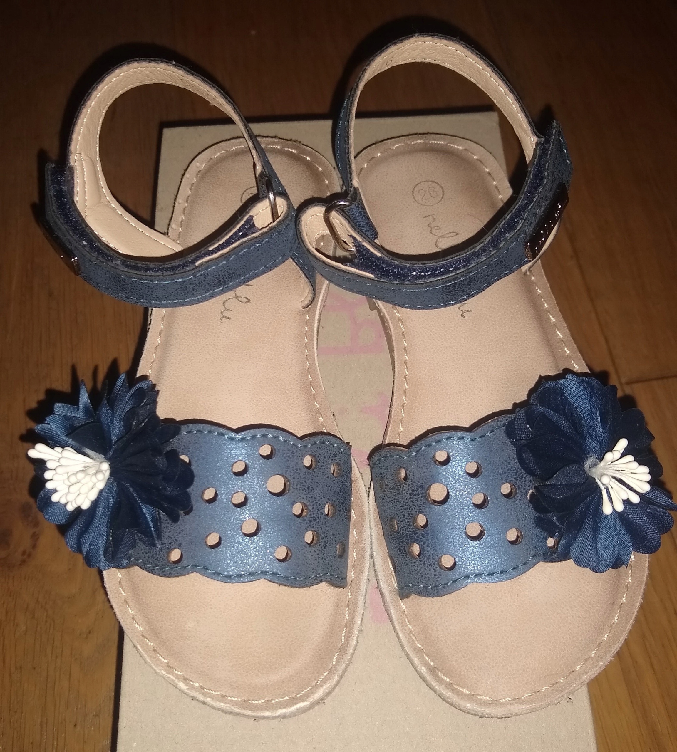 Красивые темно-синие босоножки с декоративным цветком, размер 26, на липучке.