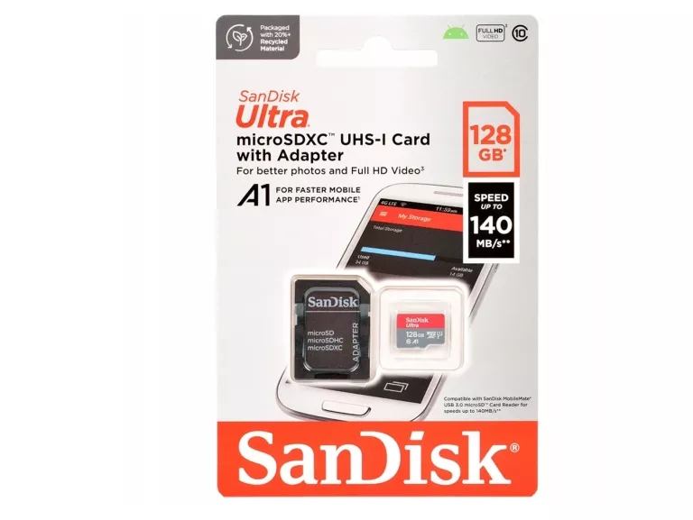 Карта SanDisk Ultra microSDXC 128 ГБ — быстрое и надежное решение для хранения фотографий, видео и приложений, идеально подходящее для требовательных пользователей. Добро пожаловать за покупкой!