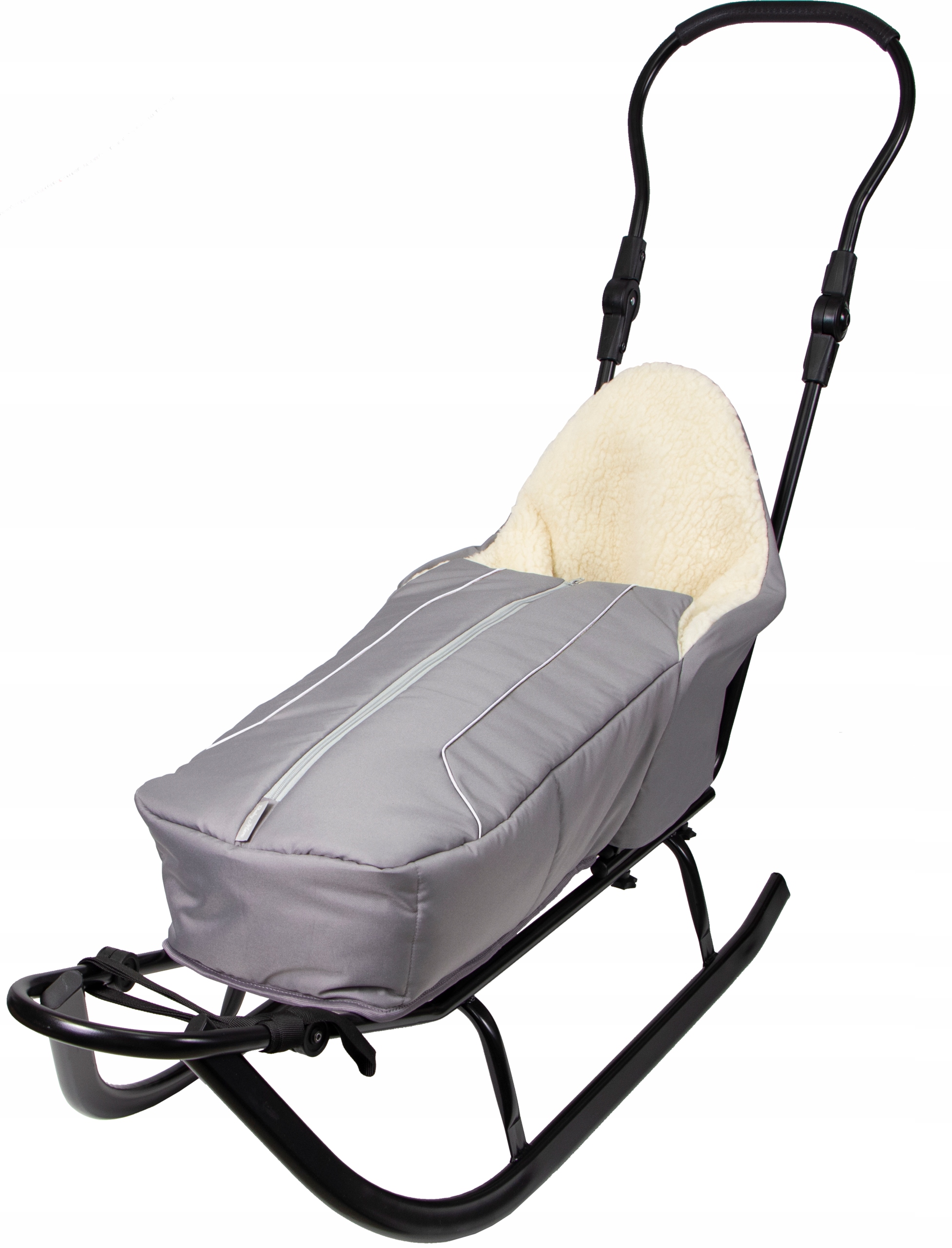 Цвет санок: чёрный + серый спальный мешок.