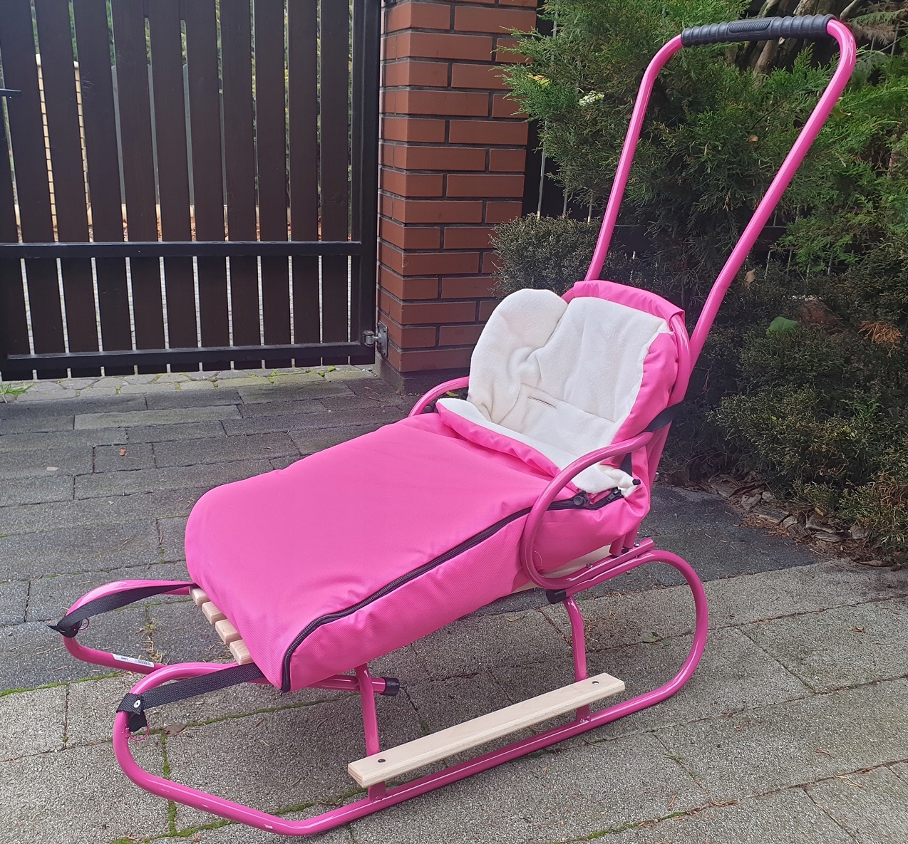 ВЫ ПОЛУЧАЕТЕ ВЕСЬ КОМПЛЕКТ, Т. е. САНКИ С ВЫСОКОЙ СПИНКОЙ, ПУШЕРОМ И ПОДНОГНЯМИ И ТОЛСТЫМ СПАЛЬНЫМ МЕШКОМ В ВЫБРАННОМ ЦВЕТЕ