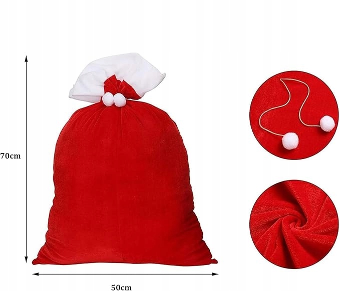 Создайте настоящую рождественскую атмосферу с красивым, мягким бархатным мешком Санты! Большой размер 70×50 см позволяет вместить множество подарков – от игрушек до одежды и сладостей. Идеально подойдет под елку, для фотосессии или в качестве украшения рождественского интерьера.