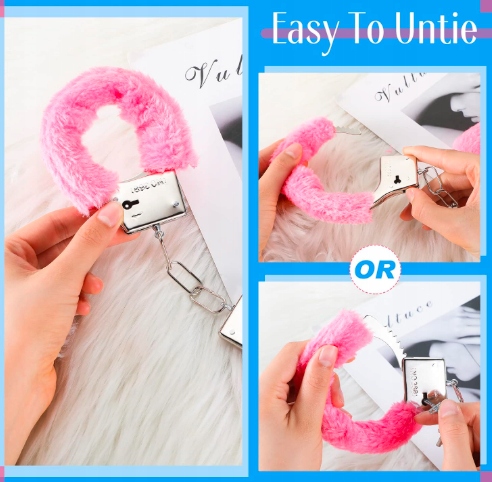 Santinior Pink Metal Hancuffs Plush Bachelorette Party 1 PC