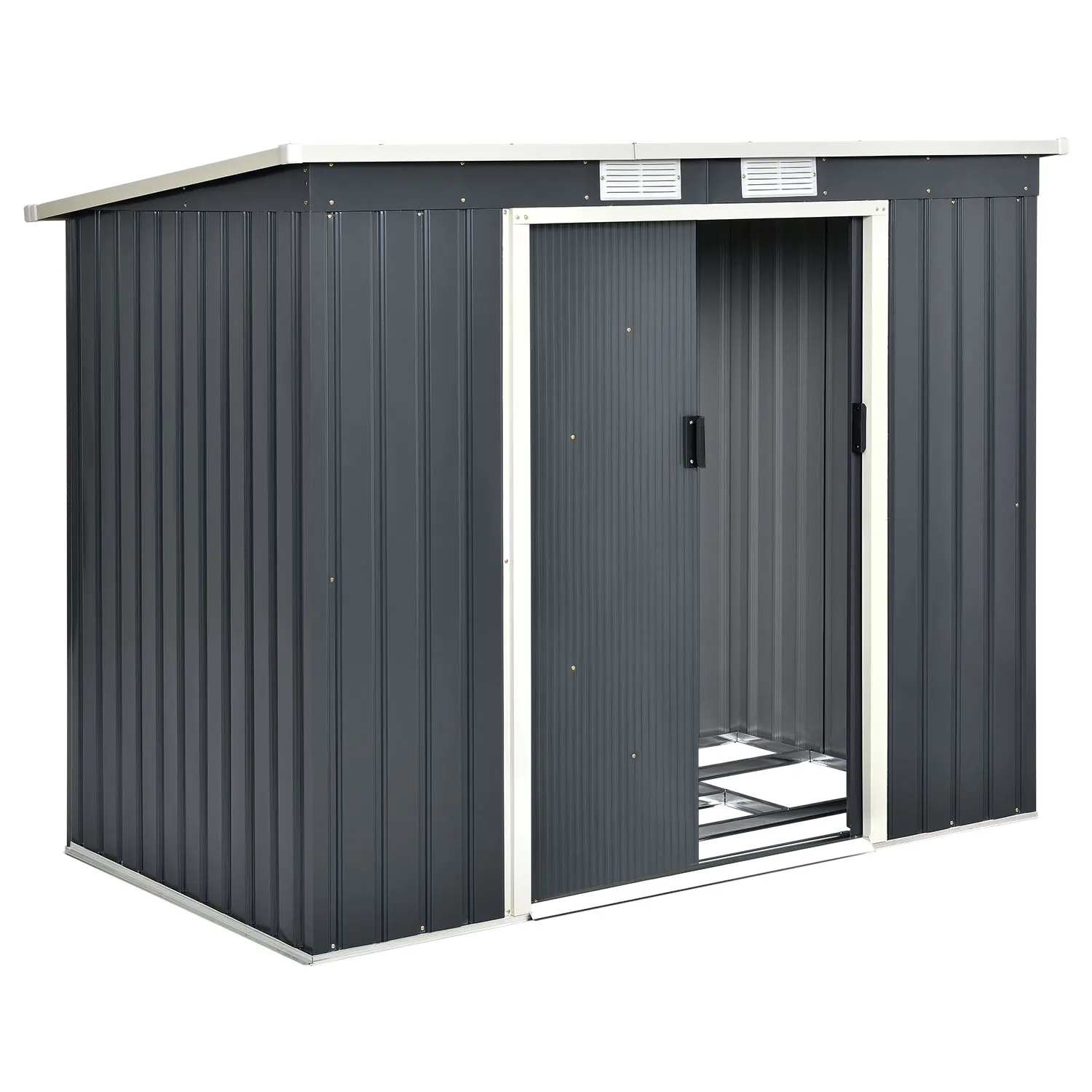 Наведите порядок в своем саду – благодаря современному металлическому садовому навесу с односкатной крышей размера М. Покончите с ржавой садовой утварью или неприглядными импровизированными чехлами. В просторном сарае есть место для садовой мебели, садовых инструментов и велосипедов. Благодаря этому вы сможете хранить свои вещи на открытом воздухе сухими, чистыми и аккуратными. Металлический фундамент и практичные двойные раздвижные двери дополняют оборудование. Еще одно преимущество: вентиляционные решетки обеспечивают хорошую циркуляцию воздуха.