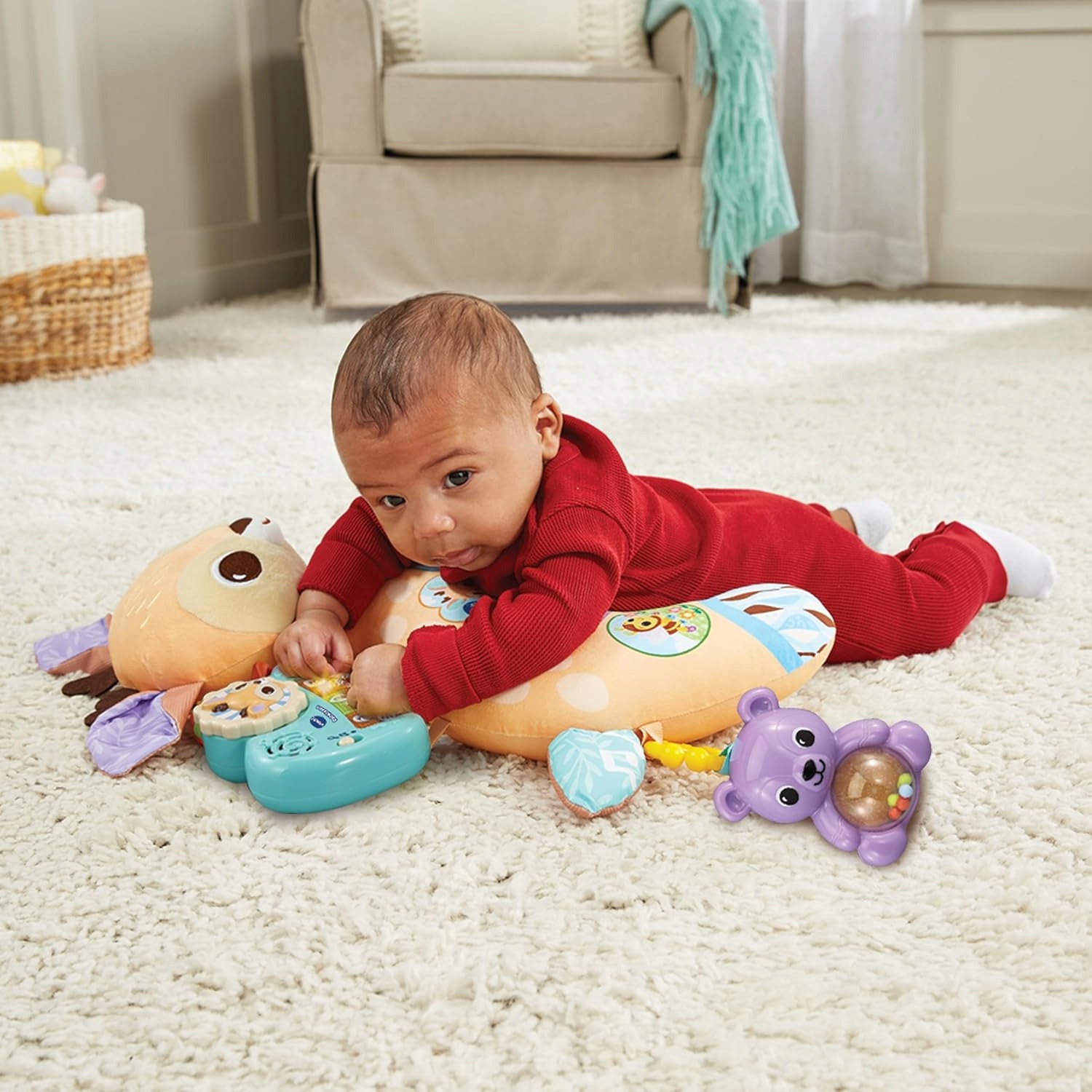 Подушка «Олень» — это не только милая плюшевая игрушка, но и центр активности с четырьмя режимами игры! Здесь вы найдете погремушку с мишками, зеркало с лисой и мини-пианино для малышей – каждый элемент можно отстегнуть и переместить в другое место, чтобы заново открыть для себя мир! 🎶👶