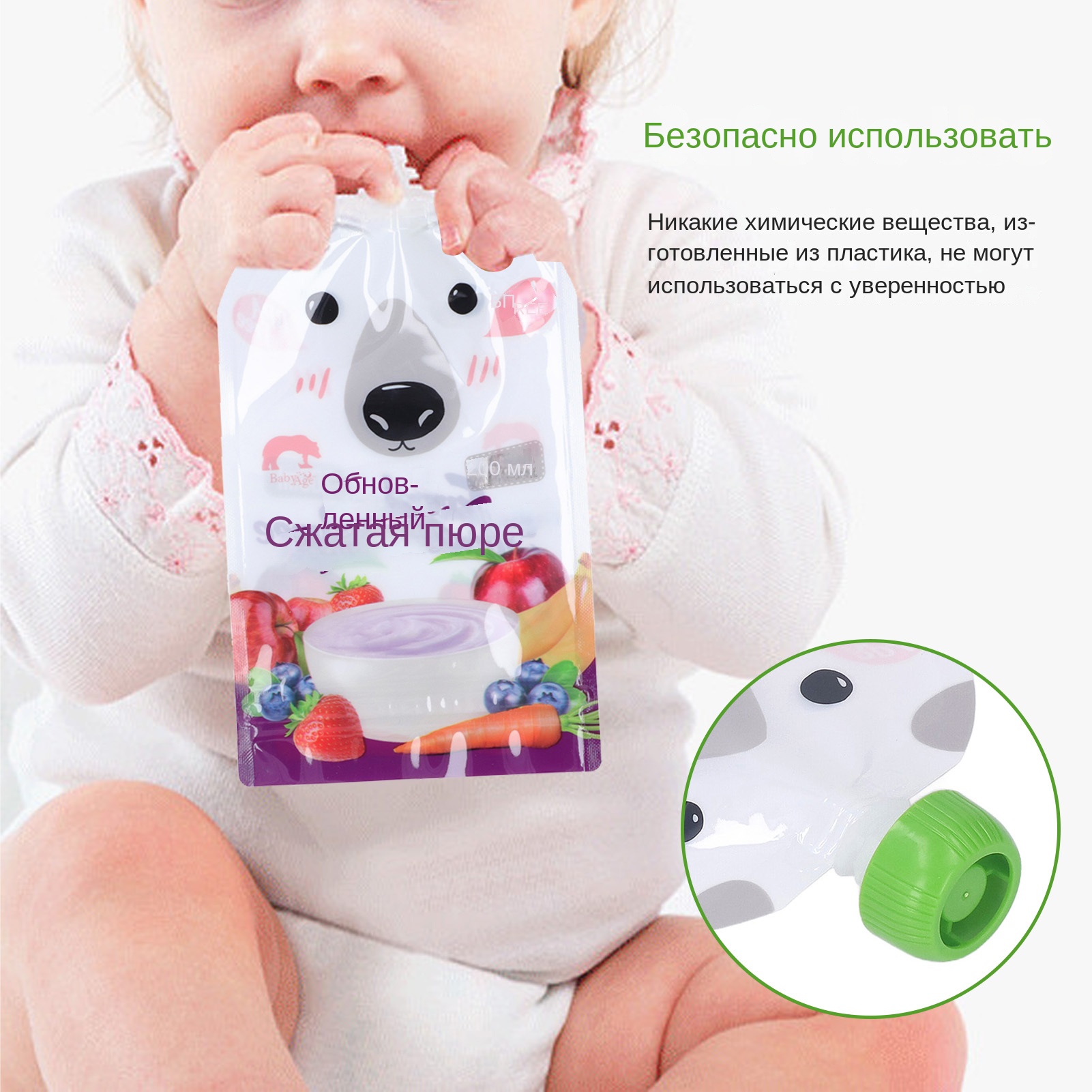 4. БЕЗОПАСНЫЙ МАТЕРИАЛ: Наполнители для фруктового пюре не содержат химикатов и изготовлены из безопасного пластика, что обеспечивает безопасное использование.