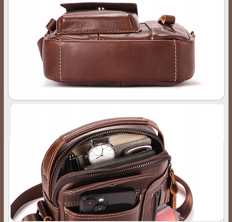 - Улучшенный дизайн. Эта мужская кожаная сумка через плечо практична и имеет кожаную ручку сверху. ремень на плечо, изысканная фурнитура, гладкий карман на молнии, долговечность использования.