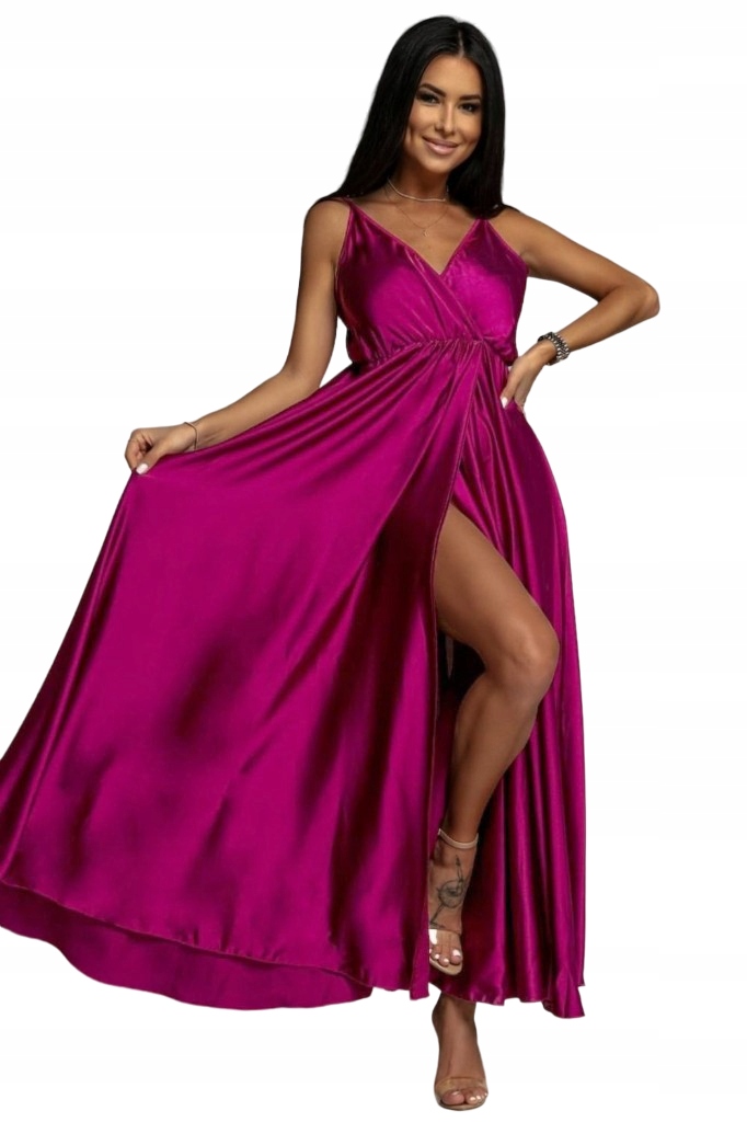 SATYNOWA DŁUGA SUKIENKA OKOLICZNOŚCIOWA NA WESELE PRZYJĘCIE WIZYTOWA MAXI