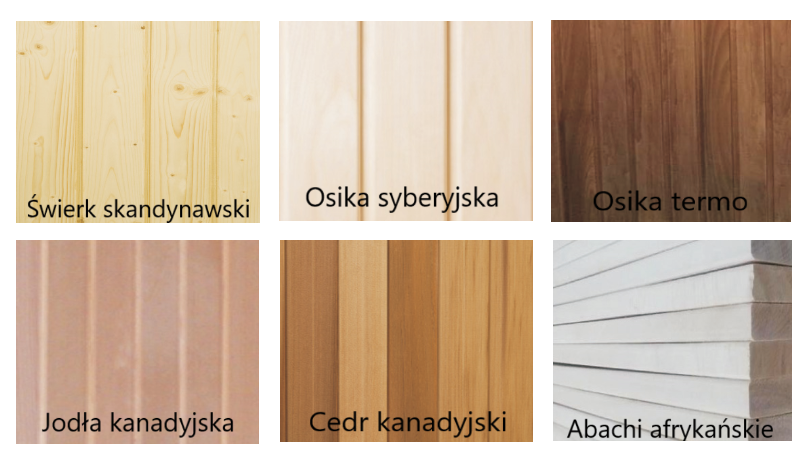 Мы представляем несколько пород дерева для изготовления каждого элемента сауны: конструкции, стен, дверей, потолка и скамеек. Интерьер традиционной финской сауны должен быть выполнен из скандинавской ели, а скамейки для сидения и лежания – из древесины абачи. Только качественная древесина для строительства сауны, которую мы предлагаем, даст вам гарантию и уверенность в том, что во время купания не будет ожогов.