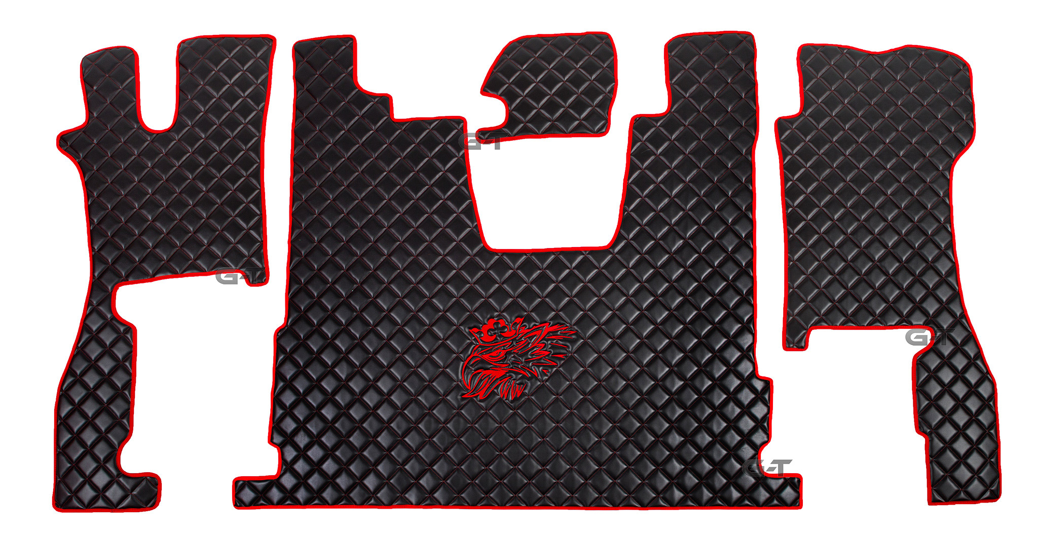 На этом аукционе мы предлагаем стеганые коврики из экокожи с одной крупной вышивкой посередине. (Цена указана за комплект на весь пол + 1 вышивка).