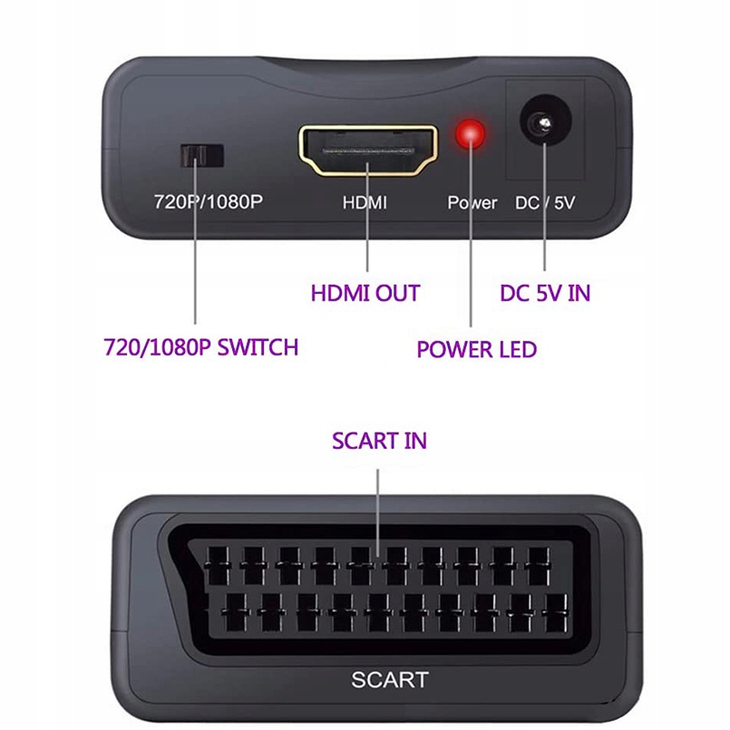 Конвертер SCART в HDMI позволяет преобразовывать аналоговый сигнал (изображение и звук) старых устройств с входом SCART в цифровой сигнал для устройств с входом HDMI (ресиверы с входом HDMI)