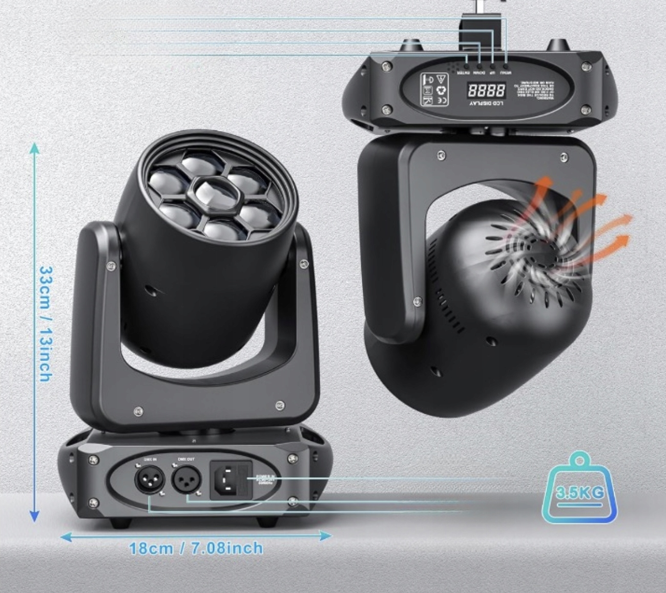 Благодаря универсальным функциям, таким как управление DMX 512, вы имеете полный контроль над светом, который позволяет вам точно соответствовать эффектам атмосферы события