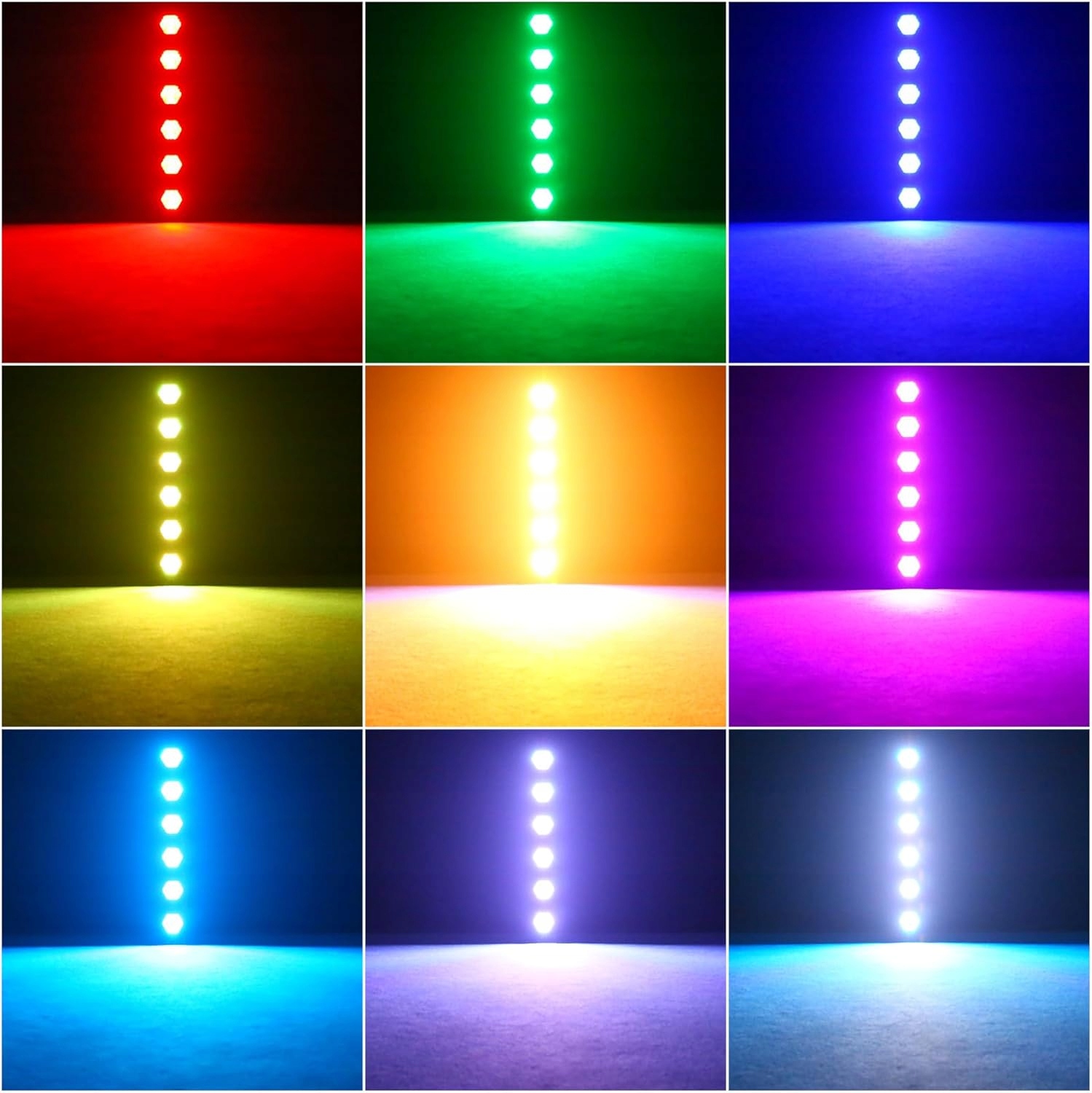 - 【Цветной эффект COB+RGB】Сценический светильник DJ оснащен 6 теплыми белыми светодиодами COB мощностью 50 Вт и 63 небольшими встроенными светодиодами 3 в 1 5050 SMD RGB RGB. Он имеет световые эффекты, такие как заставка, прыжок, цветовой градиент и монохромная комбинация.