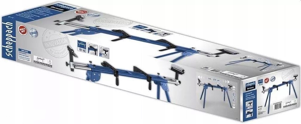 Стойка торцовочной пилы Scheppach UMF2000 подходит для большинства пил, доступных на рынке. Характеризуется прочной и легкой конструкцией. Имеет регулируемые рычаги, которые можно выдвигать до 2 метров. Это обеспечит стабильную и легкую установку машины. Стол позволяет легче сохранять эргономичное положение при резке различных элементов. Грузоподъемность стенда 150 кг.